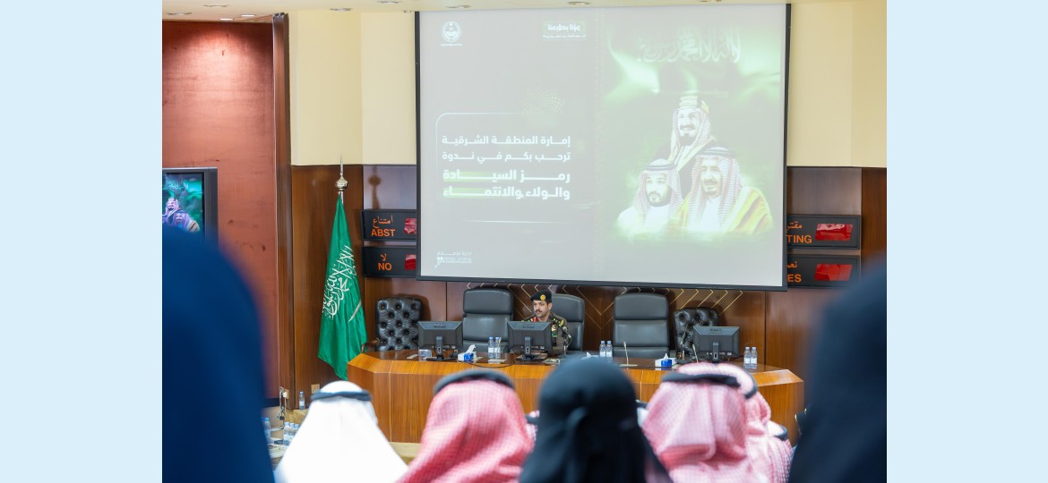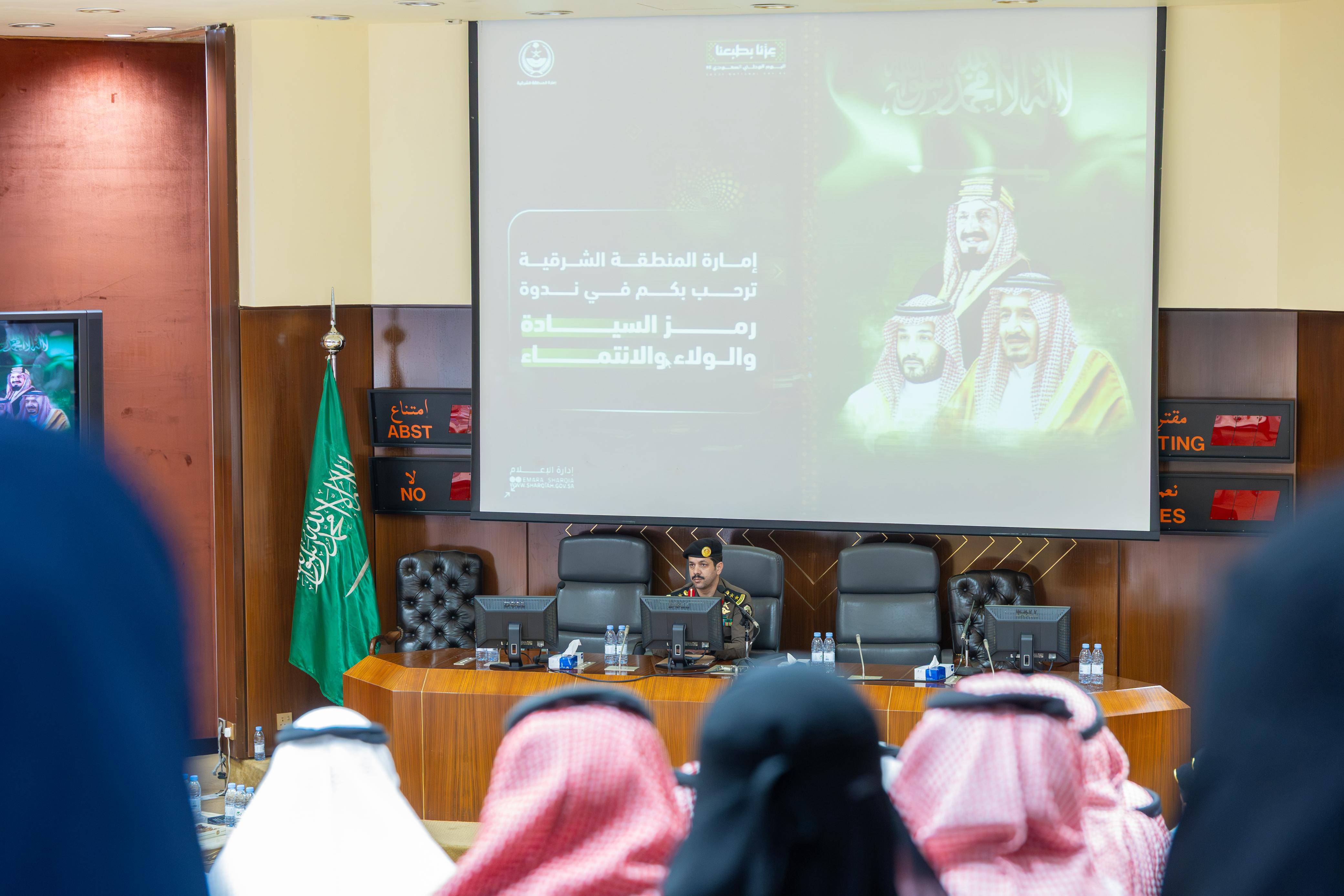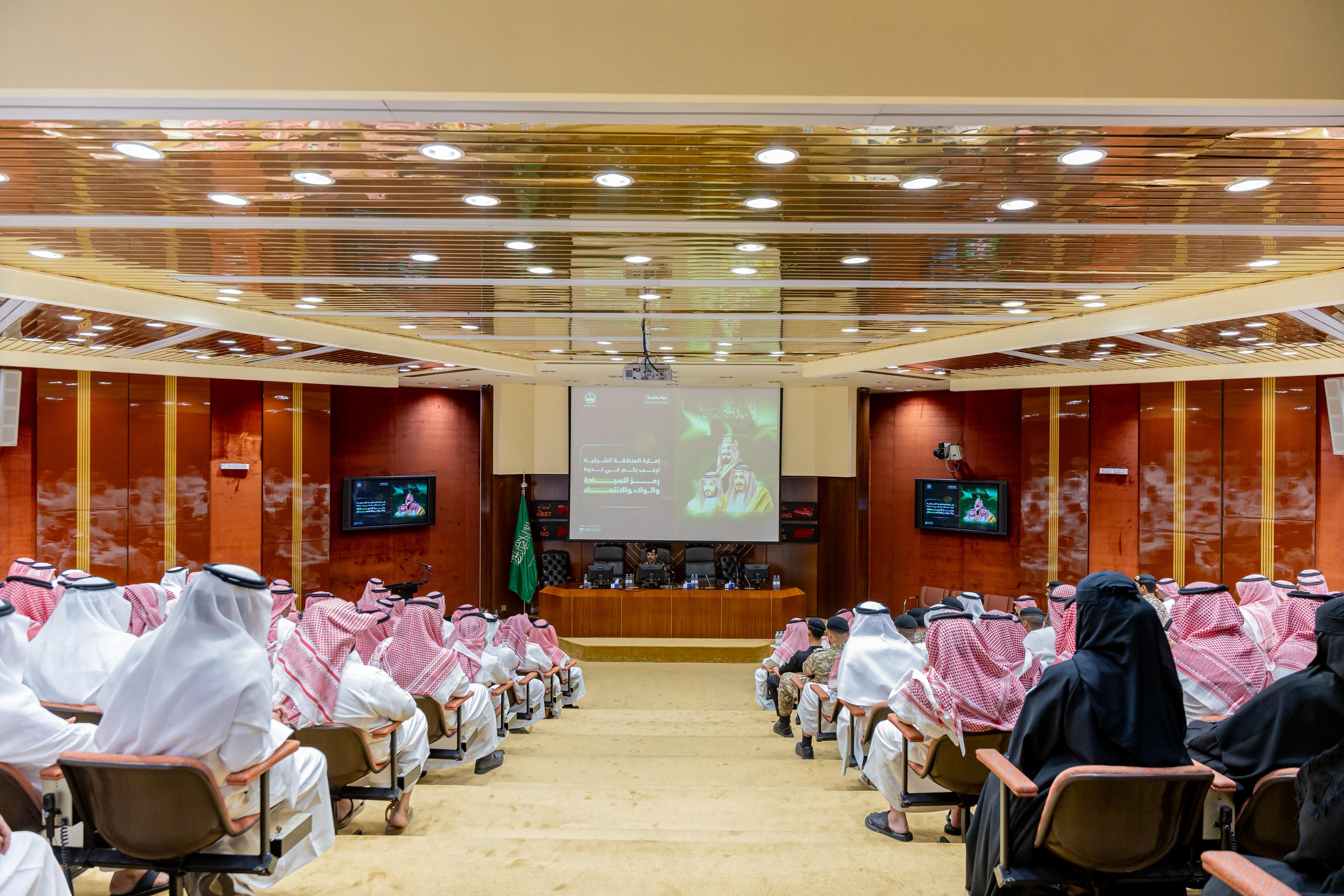 نظمت إمارة المنطقة الشرقية بالتعاون مع الإدارة العامة للتوجيه والإرشاد بوزارة الداخلية، في ديوان الإمارة اليوم الأحد، ندوة بعنوان " رمز السيادة والولاء والانتماء"، بحضور عدد من قيادات ومنسوبي الإمارة.