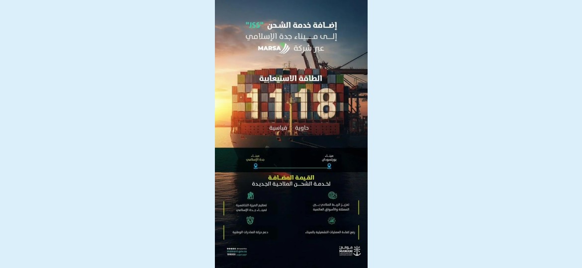 وتعمل خدمة الشحن الجديدة على ربط ميناء جدة الإسلامي، بميناء بورتسودان في السودان، بطاقة استيعابية تصل إلى (1,118) حاوية قياسية.