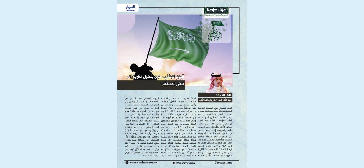 اليوم الوطني ليس مجرد احتفال، بل بيان وطني حيّ: أن هذا الوطن فريد، وأن العلاقة بين القيادة والشعب هي سر بقائه وتفرّده، وأن المستقبل الذي يُشكّله الملك سلمان وولي عهده محمد بن سلمان هو امتداد طبيعي لتاريخ بدأ ليبقى ويتجدد، إنه يوم نحتفل فيه ليس بالماضي فقط، بل بما نعيشه اليوم، وبما نصنعه للغد.
