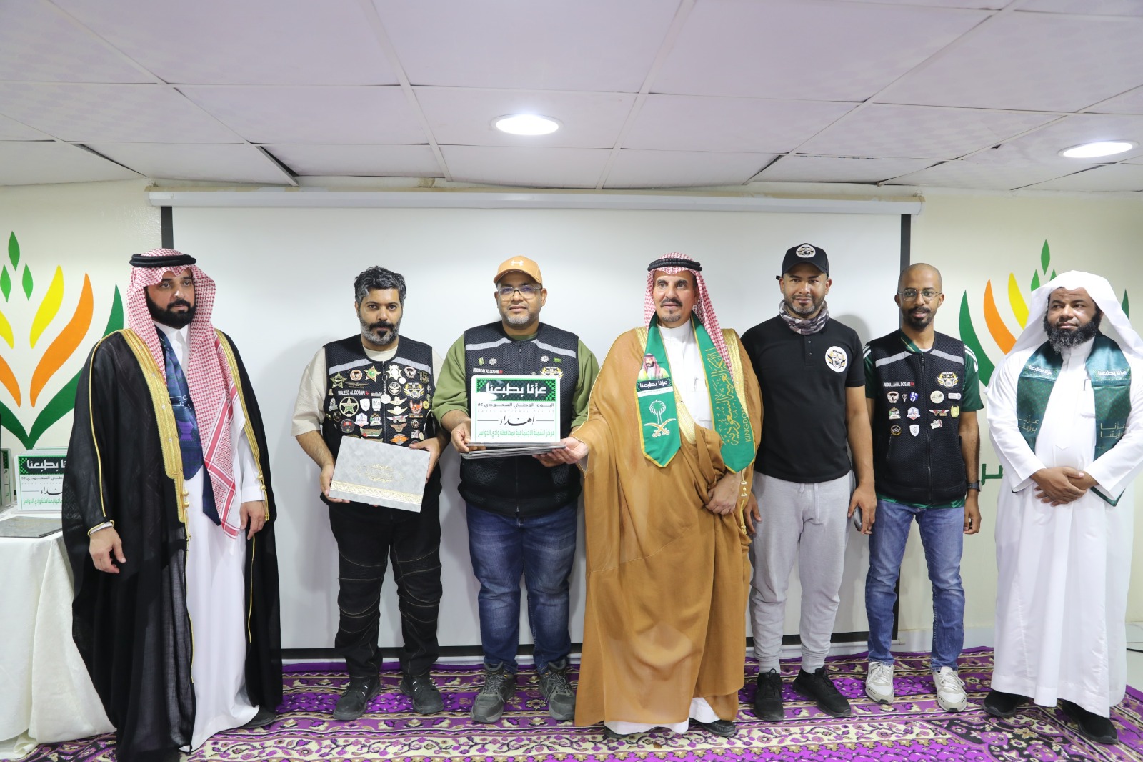 احتفى مركز التنمية الاجتماعية بمحافظة وادي الدواسر بالشراكة مع جمعية التنمية الأهلية بالشرافاء، أمس، باليوم الوطني الـ95 للمملكة، من خلال تنظيم فعاليات ومسابقات وطنية، بحضور محافظ وادي الدواسر فهد بن عبدالله المسعود، وعدد من مسؤولي الجهات الحكومية وجمع من الأهالي.