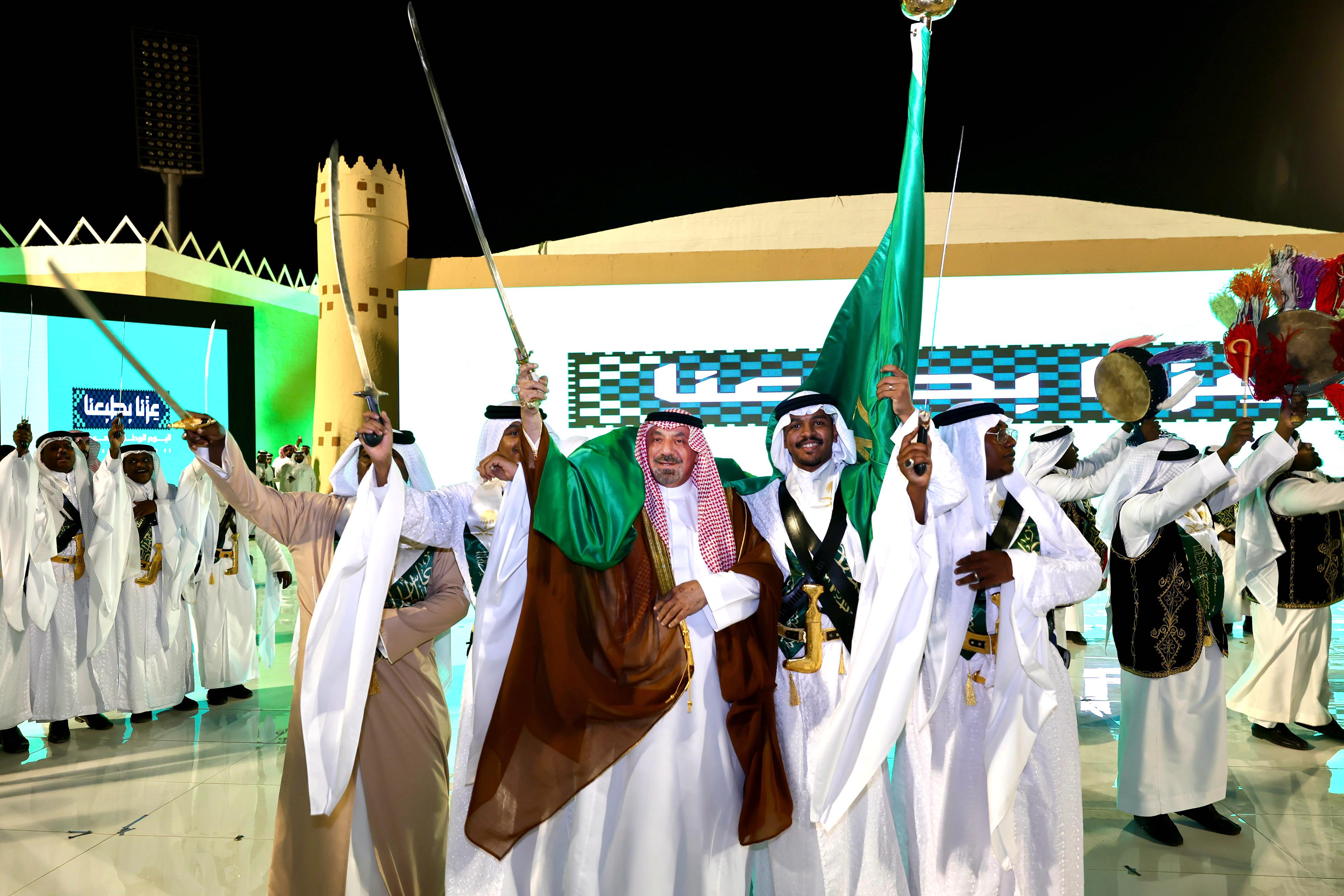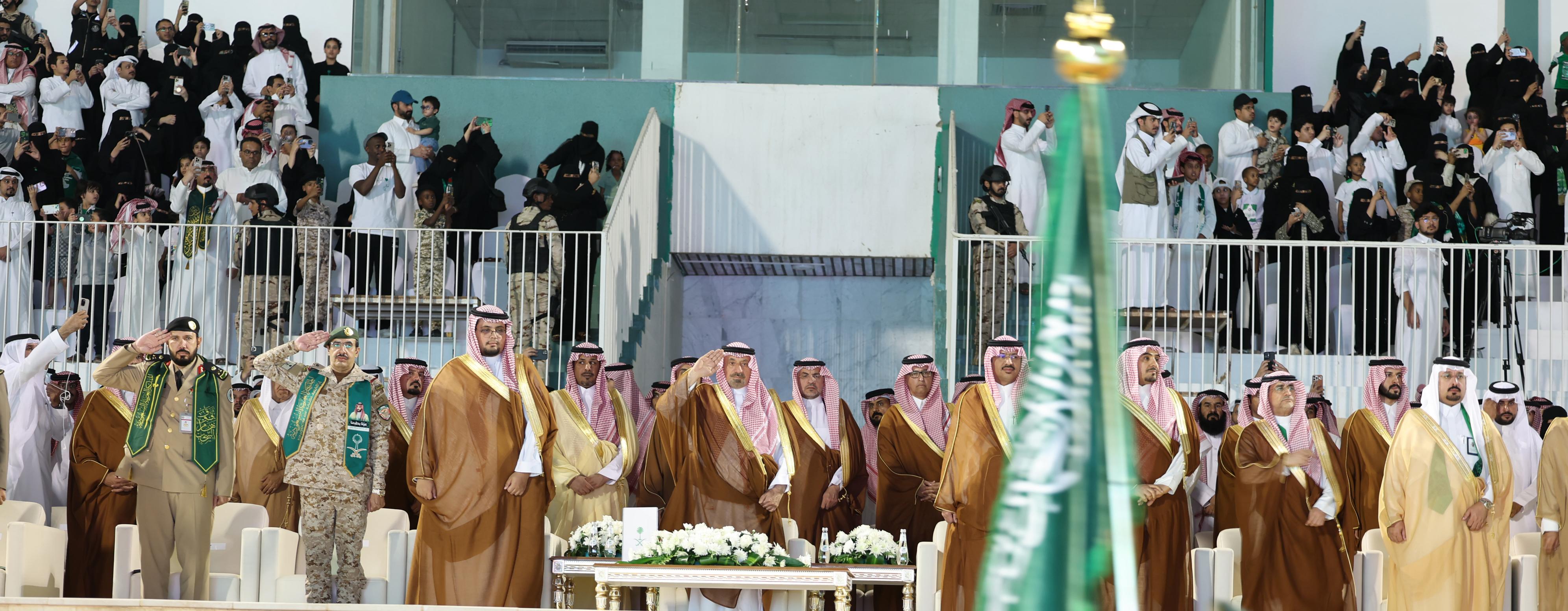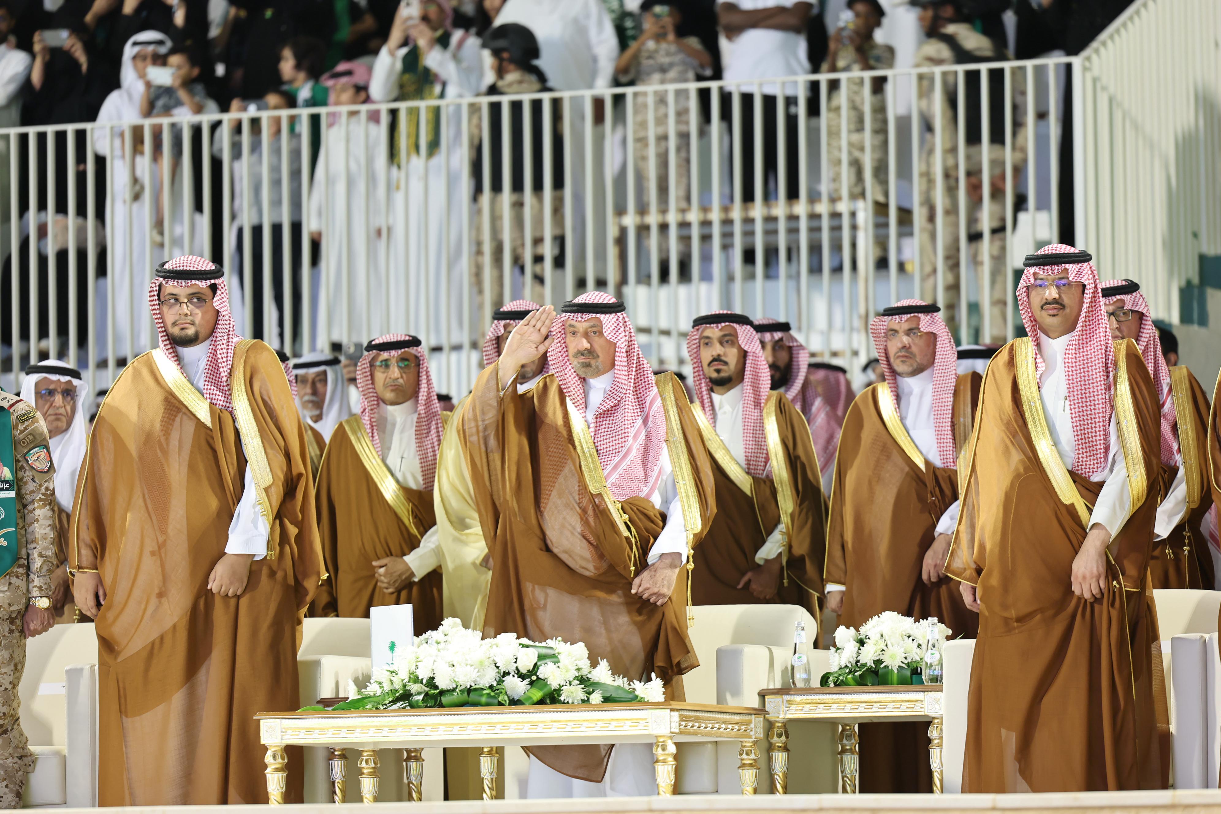 وفي ختام الحفل شارك سمو أمير المنطقة في أداء العرضة السعودية احتفاءً بهذه المناسبة.