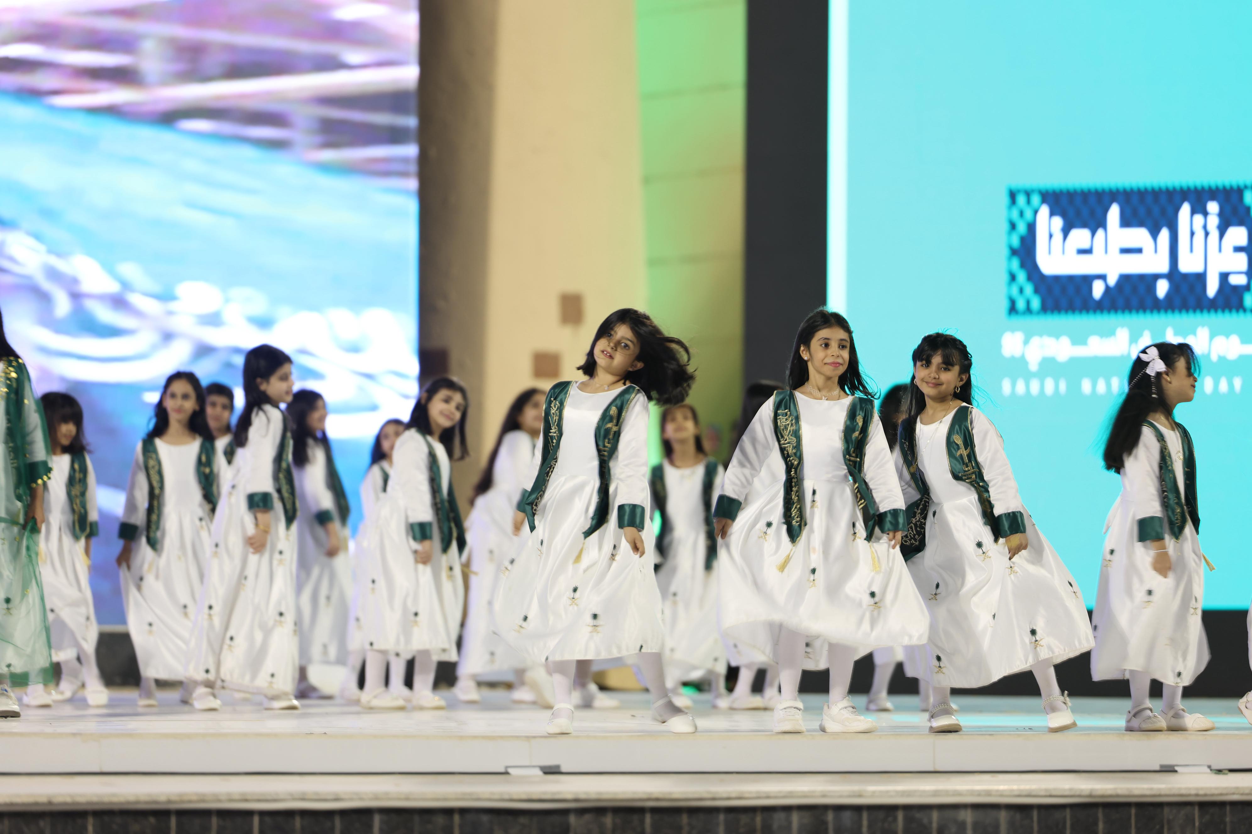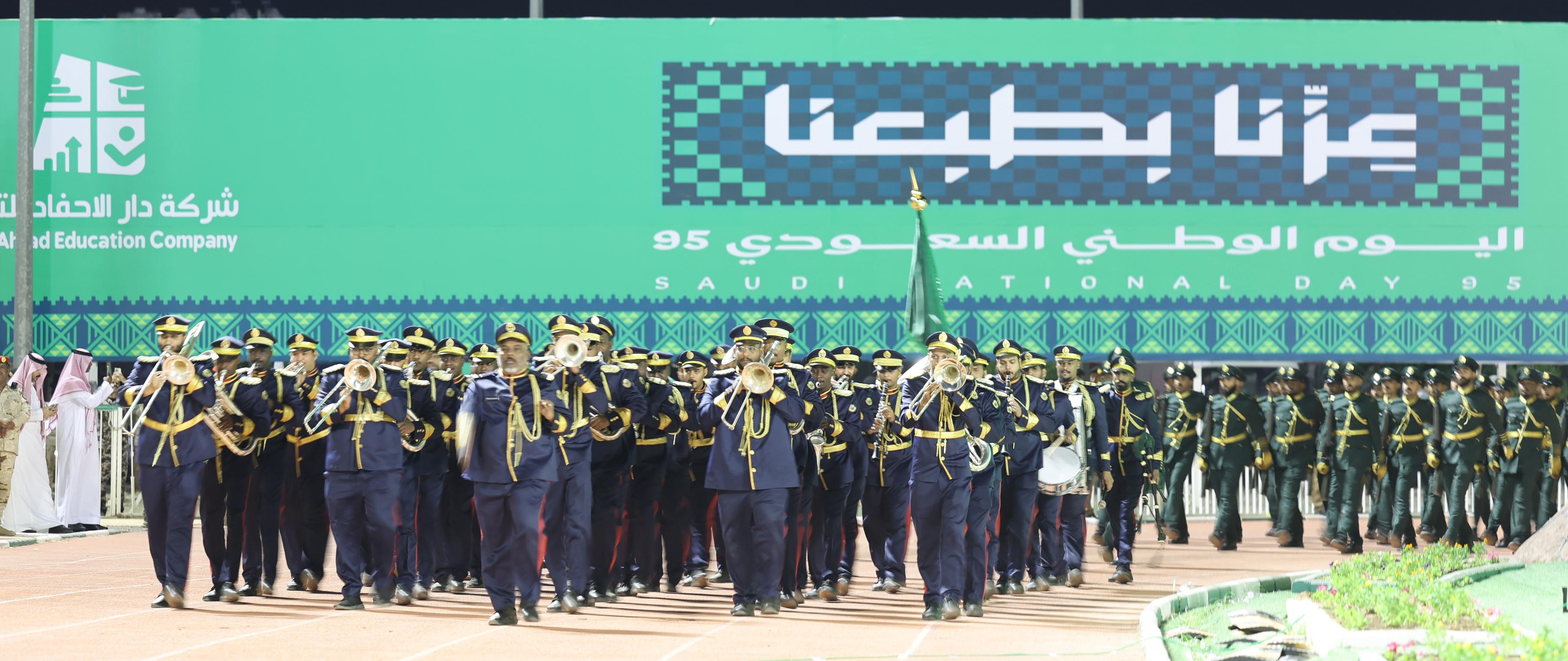 وتضمنت فقرات الحفل استعراضًا للمسيرة العسكرية، وقصائد شعرية وطنية، وأوبريتًا وطنيًا بعنوان "عزّنا بطبعنا" شارك فيه طلاب وطالبات مدارس تعليم نجران، وقدمت الفرق الشعبية لون "الزامل"، و"الطبول".