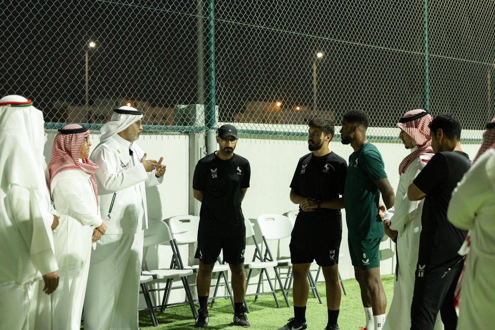 وشهدت الحصة التدريبية حضور رئيس النادي الأستاذ سامر المسحل إلى جانب عدد من كبار مشجعي الاتفاق، حيث حرصوا على تقديم دعمهم المعنوي ورسائلهم التحفيزية للاعبين قبل اللقاء المرتقب.