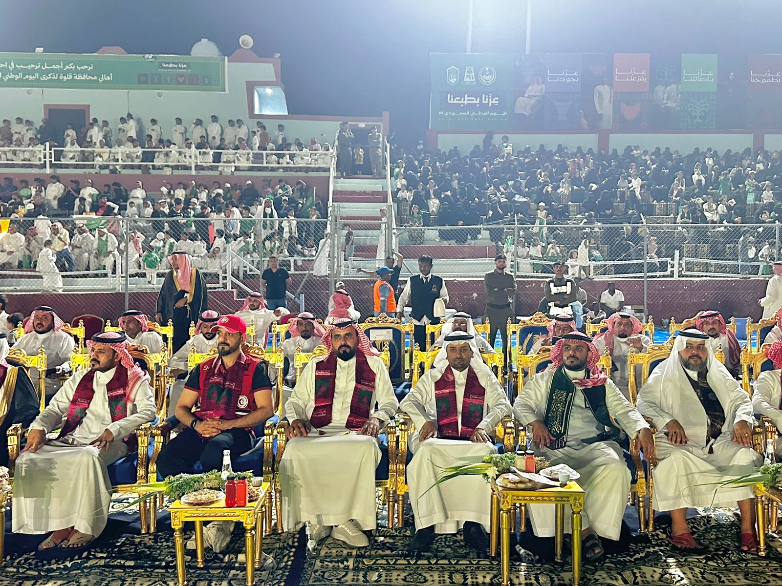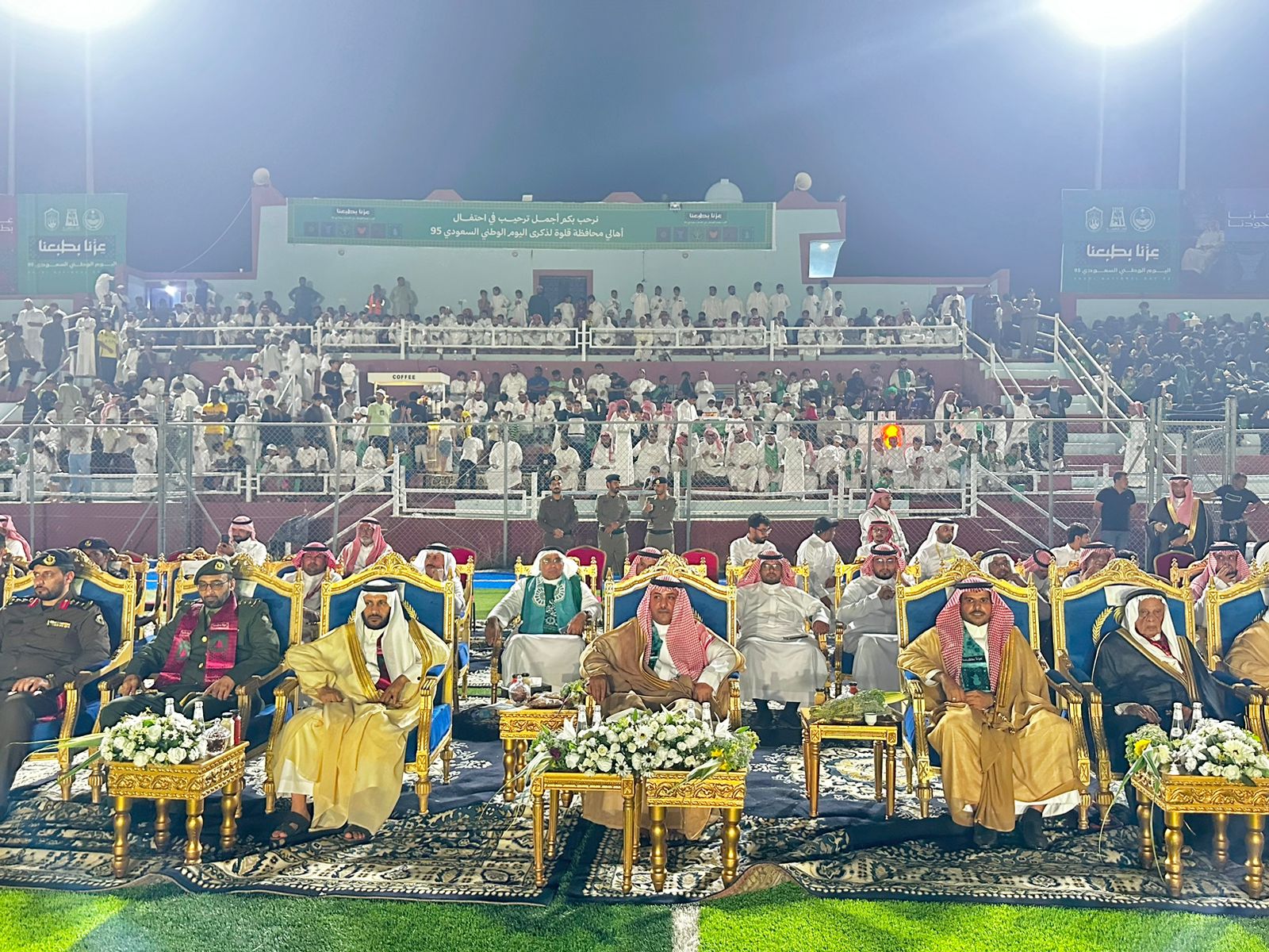 رعى محافظ قلوة علي بن احمد الشهري حفل أهالي المحافظة بمناسبة اليوم الوطني الـ 95 الذي نفذت البلدية بمشاركة الجهات الحكومية والأهلية والقطاع الخاص وذلك على ملعب نادي قلوة الرياضي بحضور مديري الإدارات الحكومية والأهلية وسط حضور لافت من أهالي والزوار