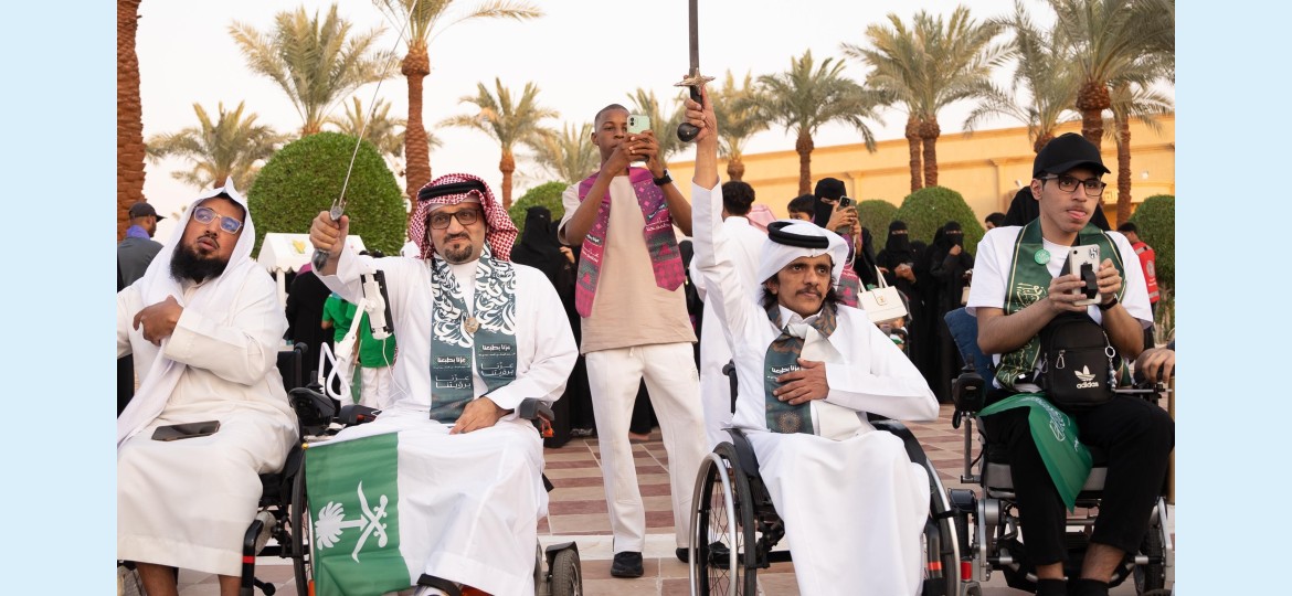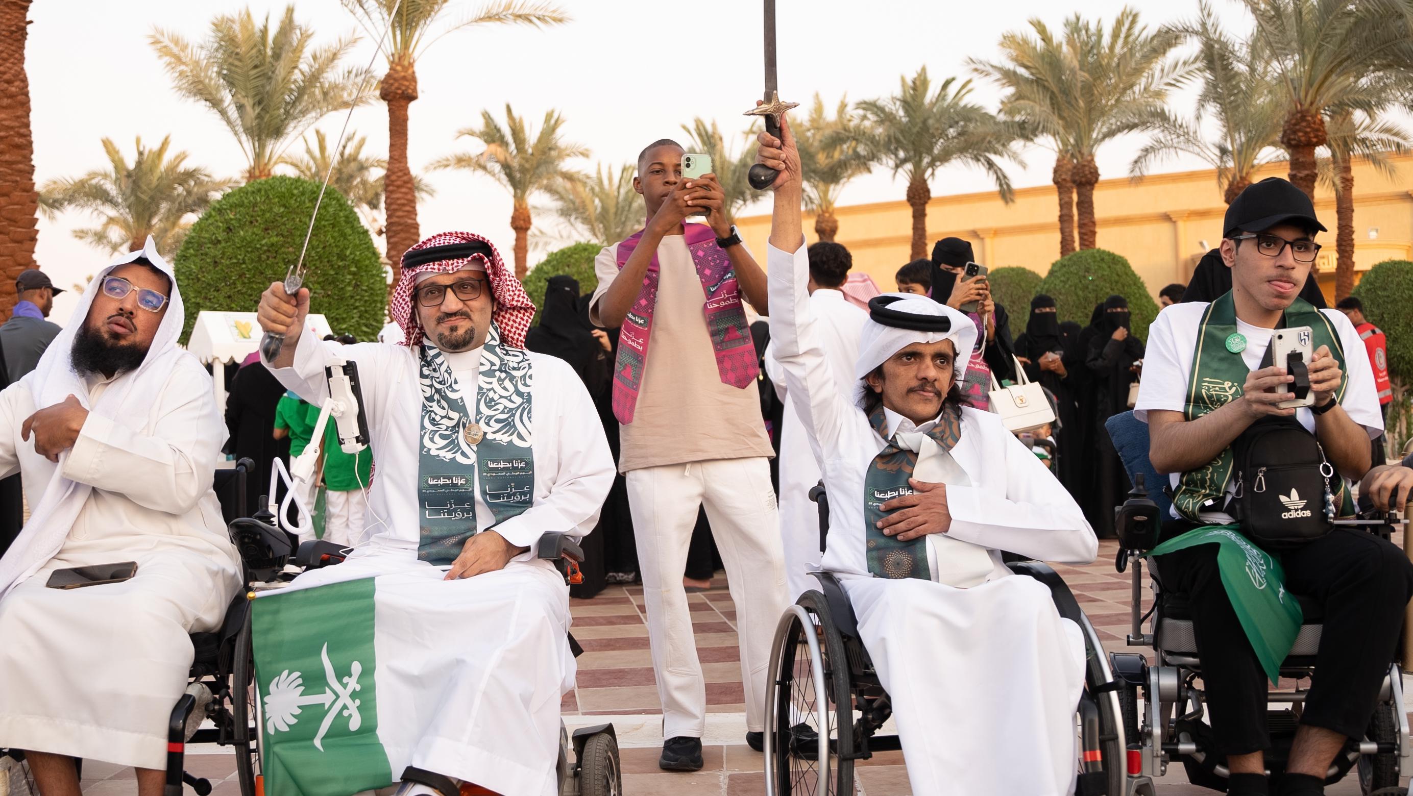 في أجواء وطنية مفعمة بالفرح والفخر والانتماء، نظمت جمعية الإعاقة الحركية للكبار "حركية" احتفالها باليوم الوطني السعودي الـ 95 بمشاركة أكثر من 800 مستفيد ، جاء احتفاء حركية هذا العام مختلفًا في تفاصيله، إذ حرصت الجمعية على توظيف القيم السعودية الأصيلة من خلال الفعاليات والأركان المصاحبة التي تجسدت في الأصالة والكرم والطموح والفزعة والرؤية.