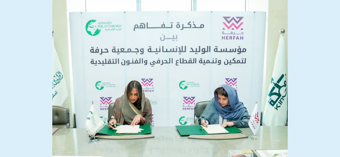 وقّعت مؤسسة الوليد للإنسانية، والتي يرأسها صاحب السمو الملكي الأمير الوليد بن طلال اَل سعود، وجمعية حرفة الأهلية مذكرة تفاهم بهدف دعم وتمكين الحرفيات والحفاظ على التراث الوطني، وتعزيز استدامة الحرف اليدوية بما يتماشى مع مستهدفات رؤية المملكة 2030 وعام الحرف اليدوية، من خلال مشاريع ومبادرات مشتركة في مجالات متنوعة.