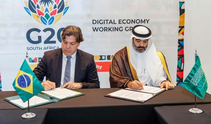 ووقّع الاتفاقية وزير الاتصالات وتقنية المعلومات المهندس عبدالله بن عامر السواحه، ووزير العلوم والتقنية والابتكار في البرازيل فريديريكو دي سيكيرا فيلهو، وذلك خلال انعقاد الاجتماع الوزاري لمجموعة العشرين حول الاقتصاد الرقمي والذكاء الاصطناعي برئاسة جنوب أفريقيا.