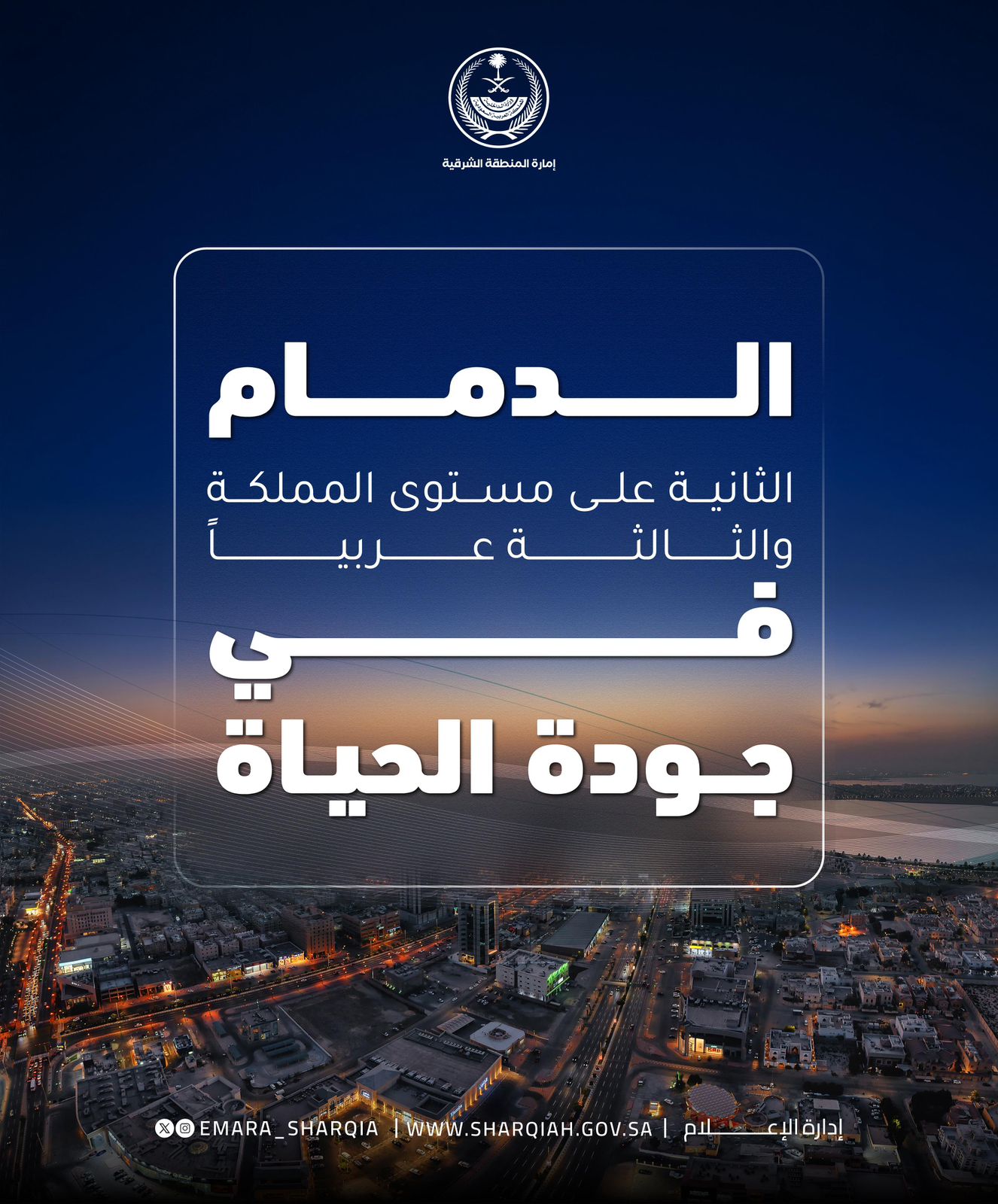 ويعكس هذا الإنجاز ما تشهده مدينة الدمام من تطور متسارع في الخدمات والبنية التحتية، إضافة إلى تنامي جودة الحياة التي تعد أحد مستهدفات رؤية السعودية 2030.