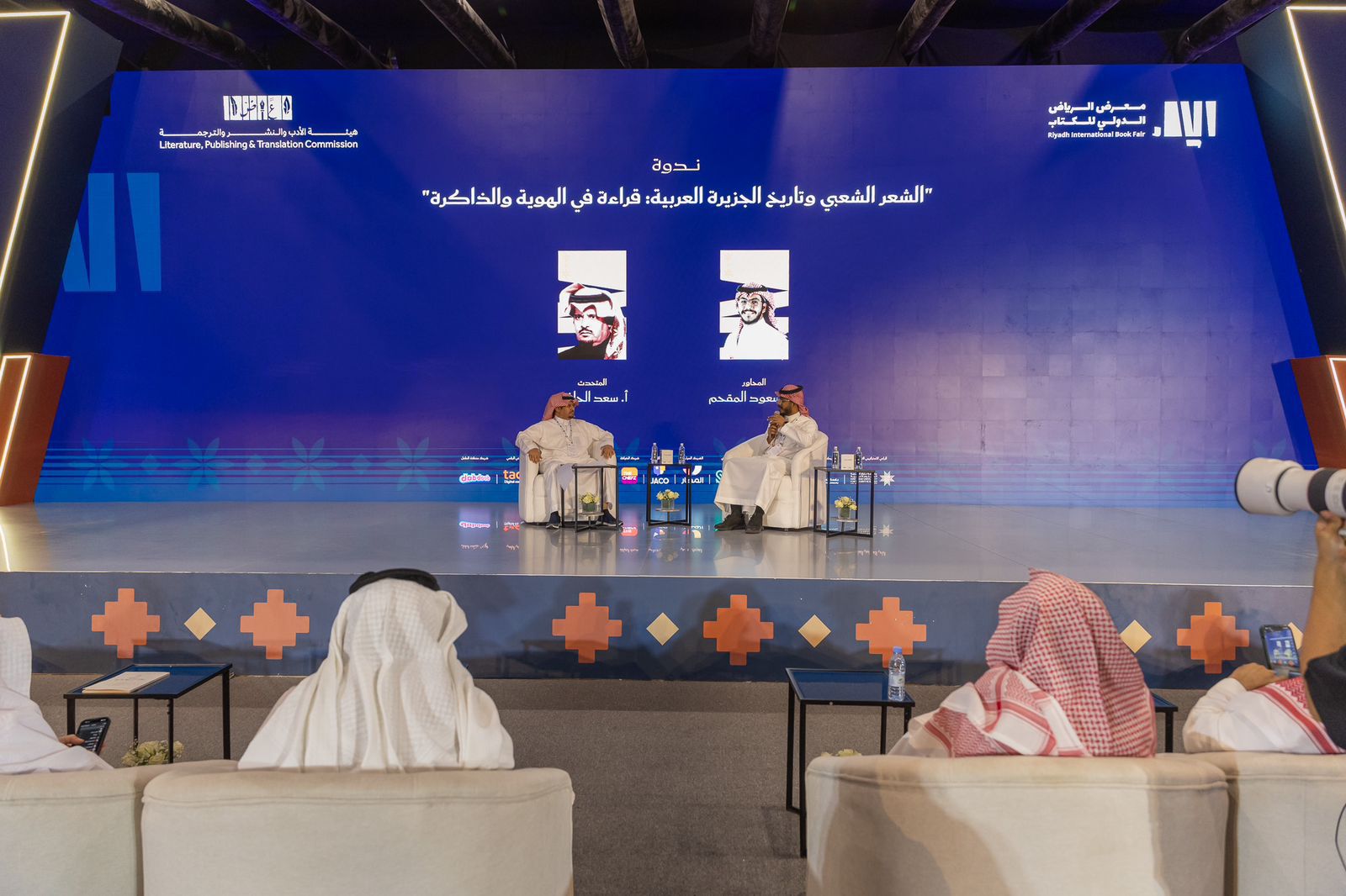 أُقيمتْ مساءَ الخميس ضمن أنشطة البرنامج الثَّقافيّ المصاحب لفعاليّات معرض الرّياض الدّولي للكتاب، الذي تنظِّمُه هيئةُ الأدب والنَّشر والتَّرجمة، ندوةٌ بعنوان "الشّعر الشّعبيّ وتاريخ الجزيرة العربيّة.. قراءة في الهويّة والذّاكرة"، قدمها الأستاذ سعد الحافي، وأدارَها الأستاذ سعود المقحم، الذي استهلَّ بشكر هيئةِ الأدب والنَّشر والتَّرجمة على اهتمامها بالشّعر والشُّعراء، باسطًا لمحاتٍ من سيرة الضَّيف الحافي، مُفسِحًا المجالَ له للحديث.