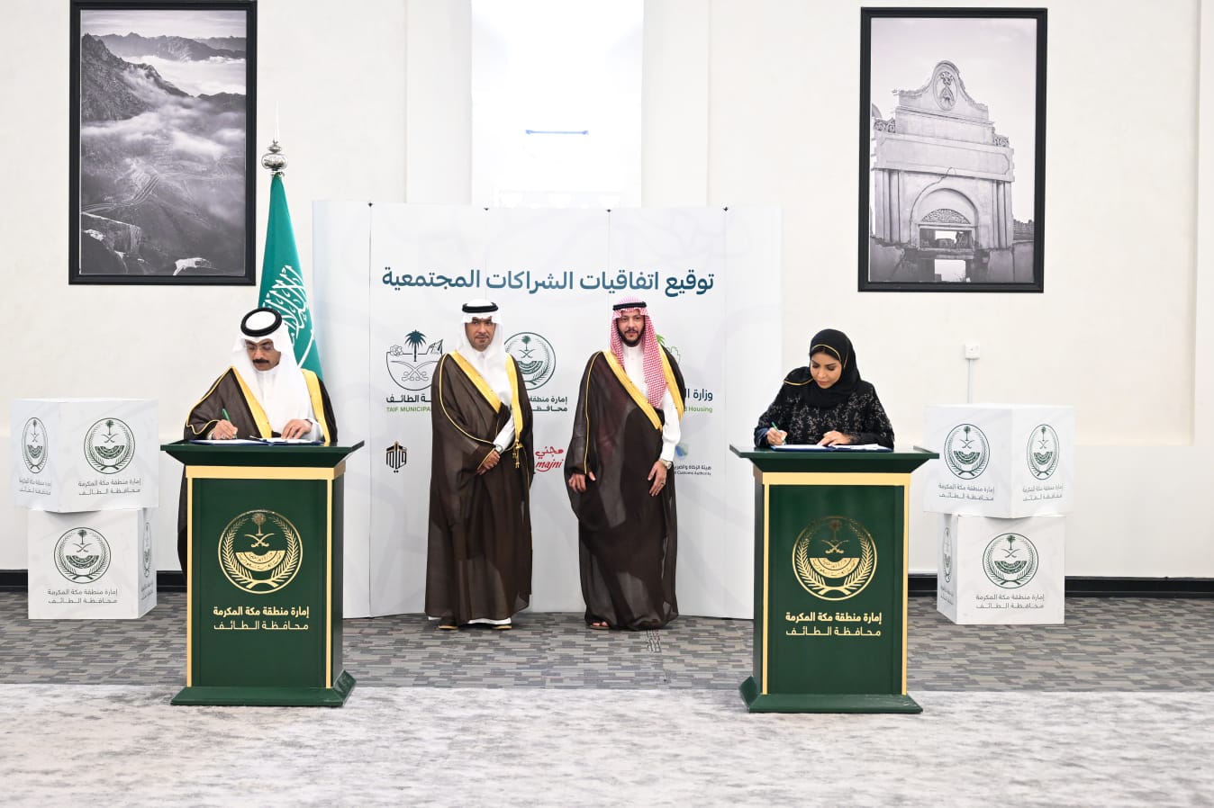 كما شهد سموه ومعالي الوزير توقيع ست اتفاقيات شراكة بين أمانة الطائف وعدد من الجهات، لتطوير الخدمات في حديقة جبرة، وإنشاء ساحة للاحتفالات بحي العنود.