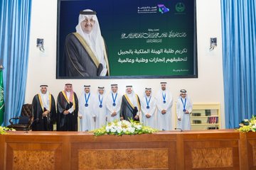 كرّم صاحب السمو الملكي الأمير سعود بن نايف بن عبدالعزيز أمير المنطقة الشرقية، بديوان الإمارة اليوم، طلاب وطالبات الهيئة الملكية بالجبيل الذين حققوا إنجازات وطنية وعالمية مميزة، بحضور معالي رئيس الهيئة الملكية للجبيل وينبع المهندس خالد السالم، والرئيس التنفيذي للهيئة الملكية بالجبيل المهندس محمود الذيب، وعدد من قيادات ومنسوبي التعليم في الهيئة الملكية بالجبيل.