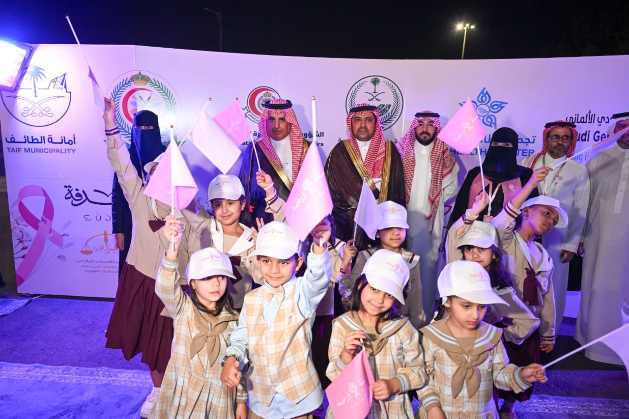 نيابة عن صاحب السمو الملكي الأمير سعود بن نهار بن سعود بن عبد العزيز محافظ الطائف الرئيس الفخري لجمعية الطائف الصحية لمرضى السرطان دشن وكيل المحافظة مصلح بن حمدان البقمي، مساء أمس الإثنين فعاليات شهر أكتوبر للتوعية بأهمية الكشف المبكر عن سرطان الثدي تحت شعار "أورام وردية" وذلك في منتزه الردف.
