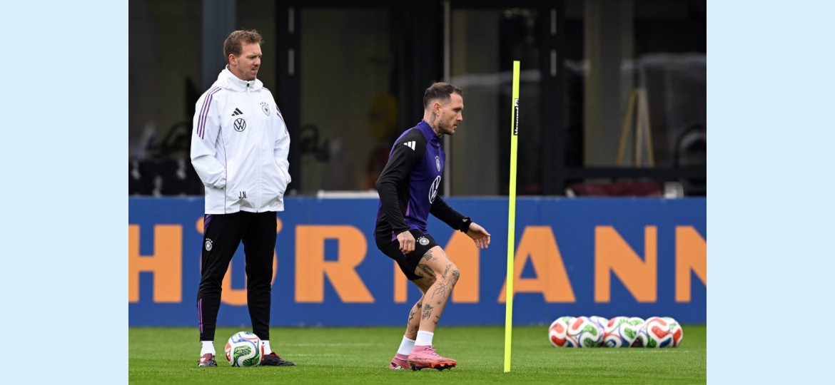 ويفتقد المنتخب الألماني عدداً من نجومه بسبب الإصابات، أبرزهم المدافع أنطونيو روديغر، ولاعب الوسط جمال موسيالا، بينما يعاني الحارس أوليفر باومان من المرض، ما يرجح اعتماد ناغلسمان على مارك أندريه تير شتيغن في حراسة المرمى. كما يواصل المدرب الاعتماد على الثنائي فلوريان فيرتز ونيك فولتيماد في الخط الأمامي رغم ابتعادهما عن كامل الجاهزية.
