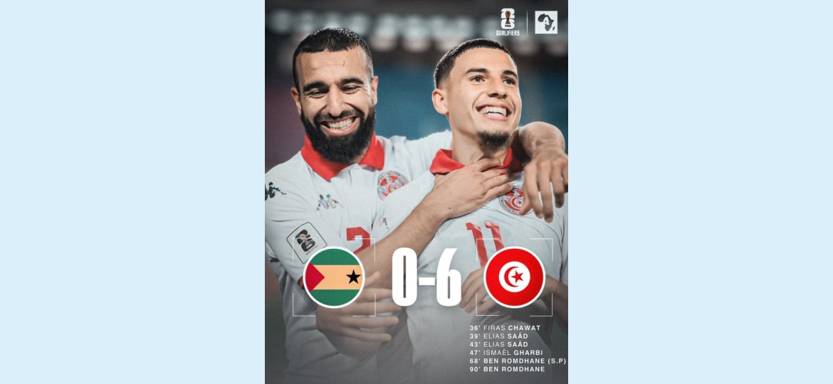 واصل المنتخب التونسي عروضه القوية في التصفيات الأفريقية المؤهلة إلى كأس العالم 2026، بعدما اكتسح ضيفه ساوتومي وبرنسيب بسداسية نظيفة، في اللقاء الذي جمع المنتخبين، الجمعة، على ملعب حمادي العقربي برادس، ضمن الجولة قبل الأخيرة من منافسات المجموعة الثامنة.