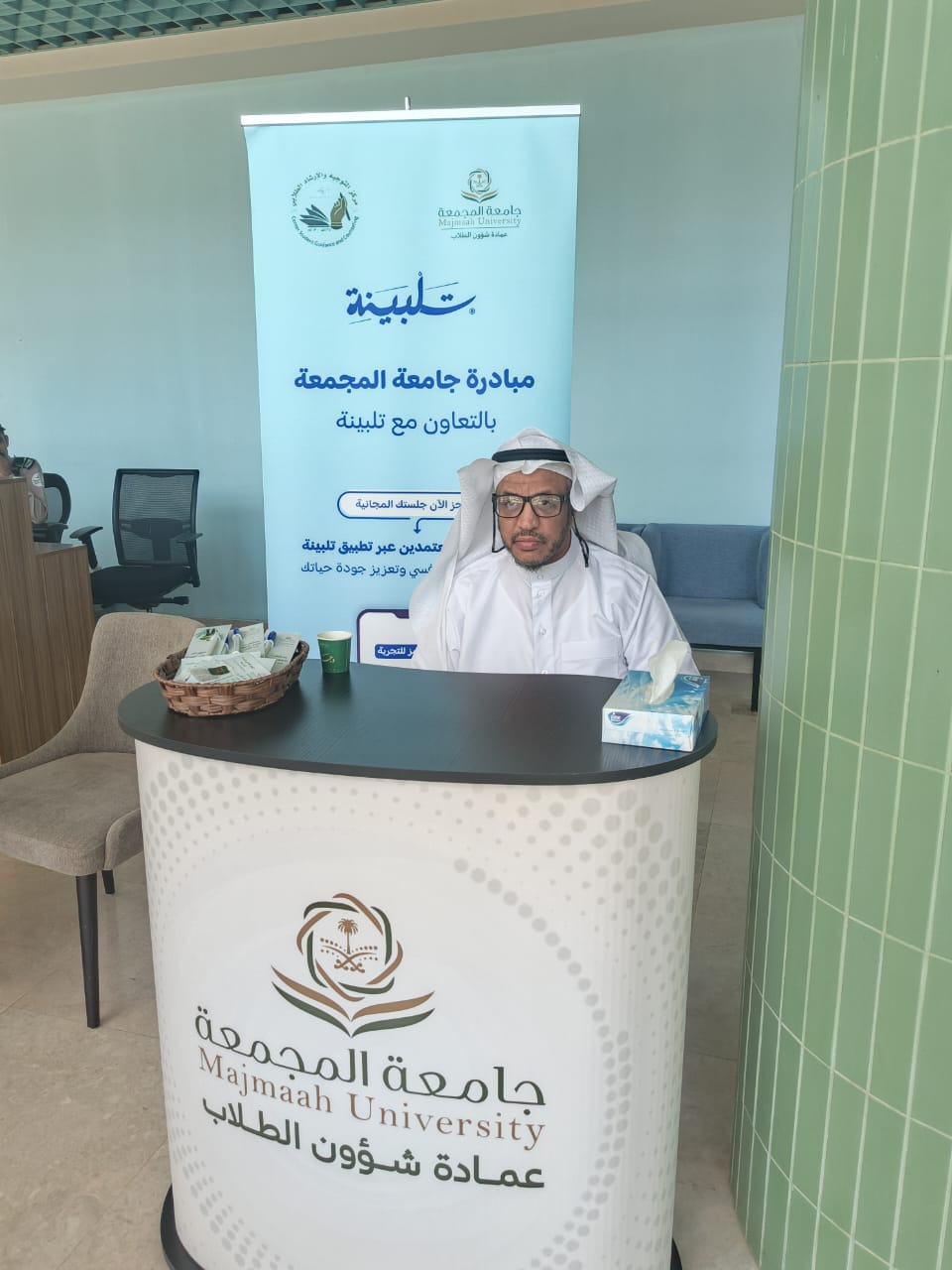 وفي هذا السياق، بَادرت تلبينة للاستشارات النفسية والاجتماعية إلى تقديم الاستشارات المجانية لطلاب جامعة المجمعة، جلسات استرشاديه هدفت إلى الوصول للطلاب في محيطهم الجامعي، والإنصات لهمومهم وتحدياتهم الشخصية والأكاديمية.