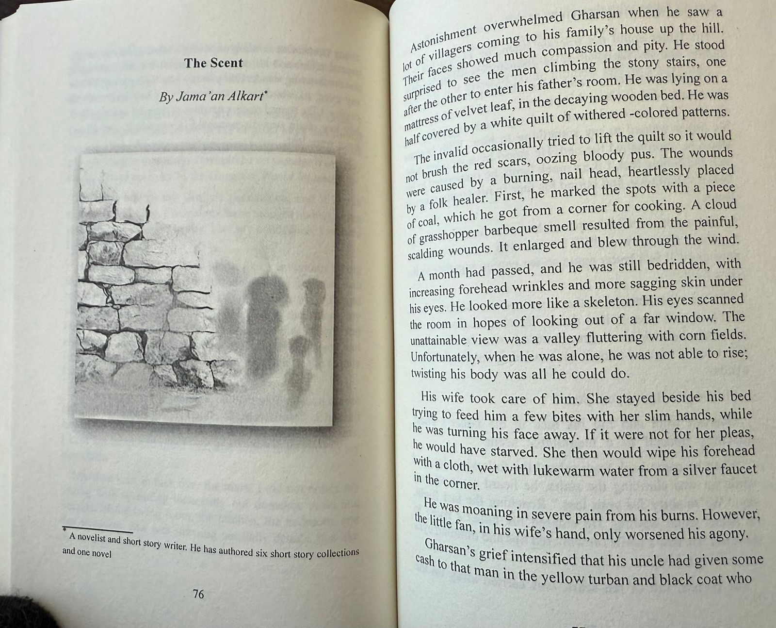 اختارت الناقدة والمترجمة الدكتورة نادية عبدالوهاب خوندنة، عضو هيئة التدريس بجامعة أم القرى، القصة القصيرة “رائحة” للكاتب جمعان الكرت، من مجموعته القصصية (طيف)، لترجمتها إلى اللغة الإنجليزية، وذلك ضمن مشروع أدبي يتضمن ترجمة مجموعة من القصص القصيرة لعدد من كتّاب القصة في المملكة العربية السعودية، بهدف إيصال الأدب السعودي إلى القارئ العالمي.