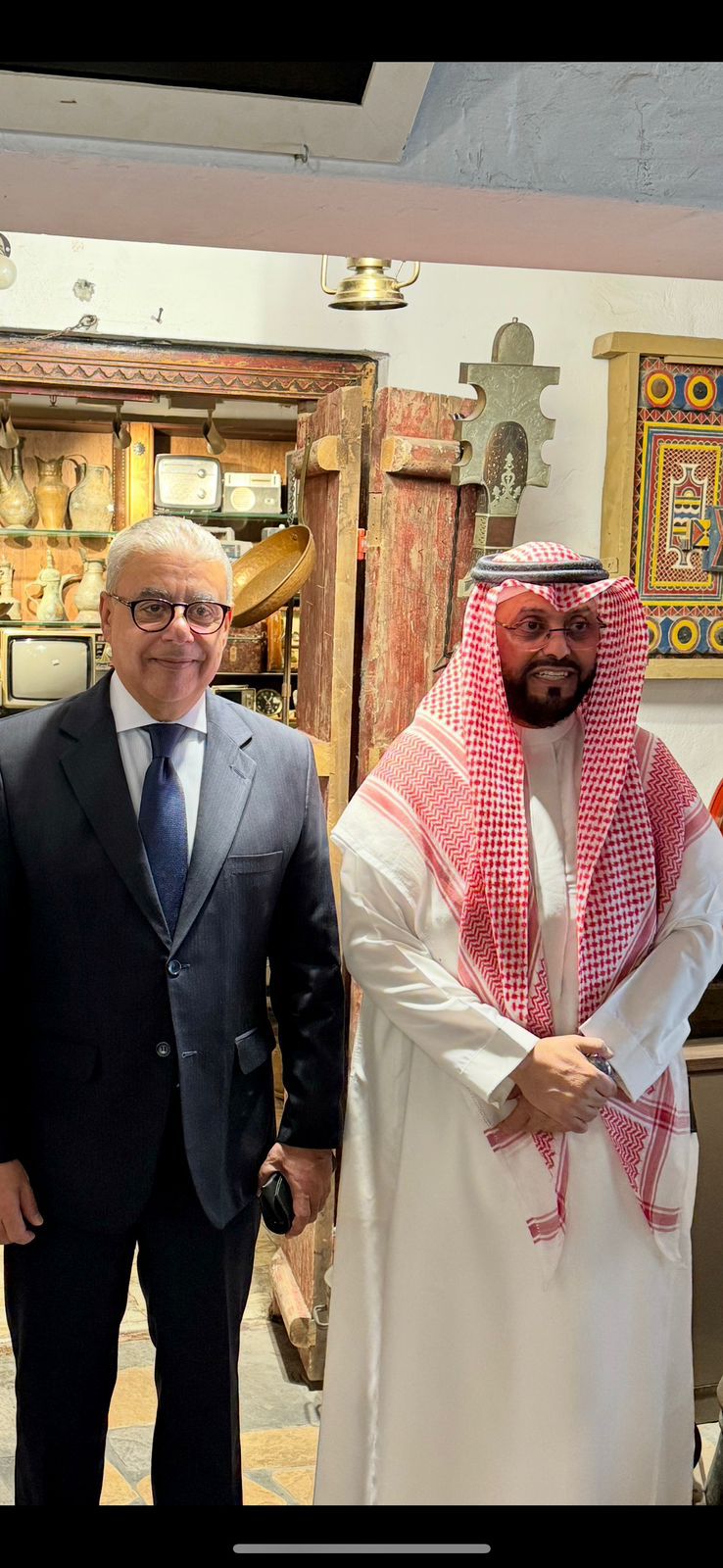 وقد شهد اللقاء تبادل الأحاديث الودية، واستعراض سبل تعزيز التعاون الثقافي والسياحي بين البلدين الشقيقين المملكة العربية السعودية وجمهورية مصر العربية إضافةً إلى جولة تعريفية داخل أرجاء القرية الشعبية التي تُعد من أبرز المعالم التراثية في المنطقة الشرقية والمسجّلة في موسوعة غينيس كأكبر مطعم مغلق في العالم .