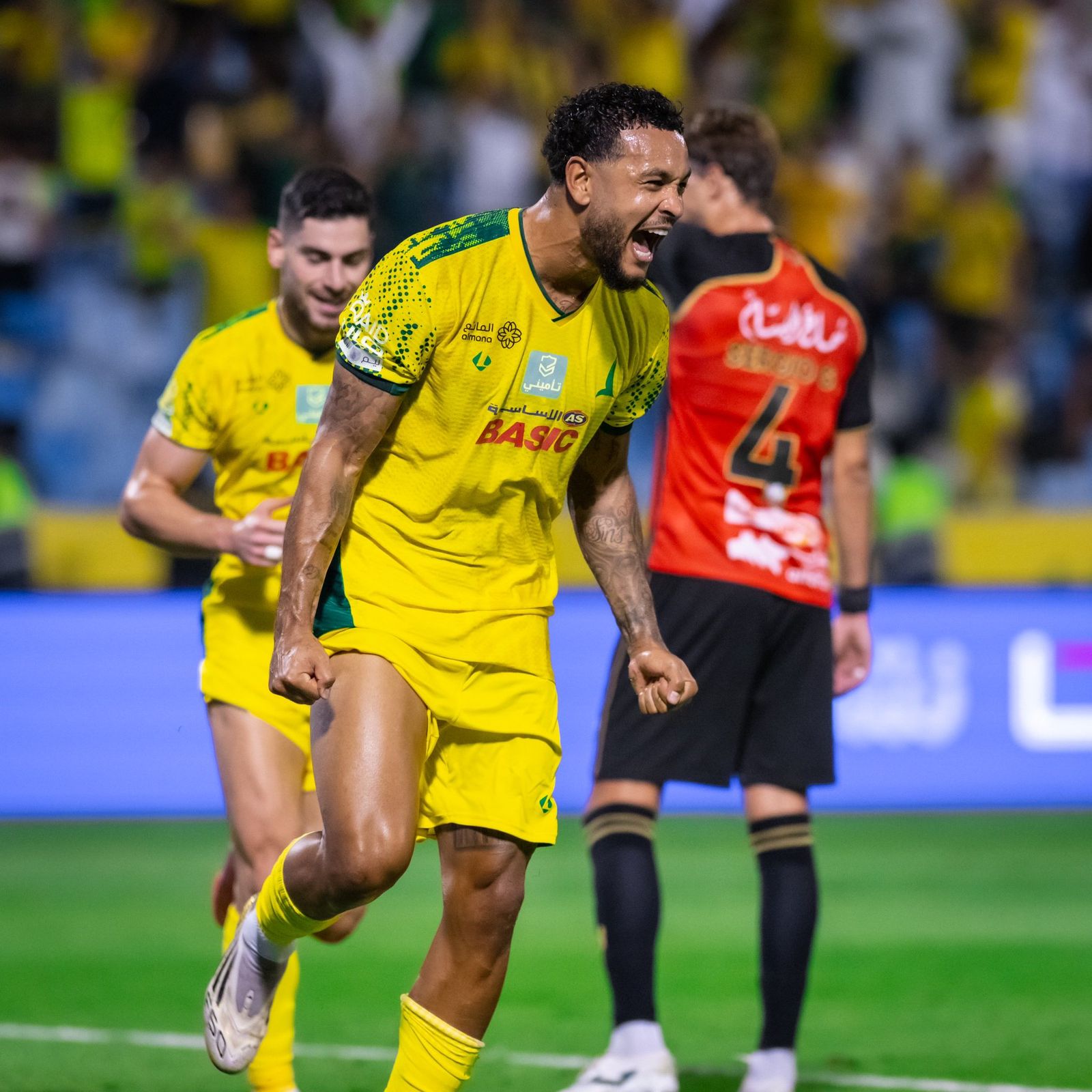 وقبل نهاية الشوط الأول، قلص الرياض الفارق بهدفه الوحيد، إلا أن هذا الهدف لم يزعزع ثقة أبناء الدانة في الشوط الثاني، حيث واصل كينغ تألقه مسجلًا الهاتريك الأول له هذا الموسم بعد تمريرة رائعة من اليوناني كوستاس فورتينيس، الذي عاد ليصنع الهدف الرابع لزميله ماسوراس في الدقيقة 66، ليبرز الثنائي اليوناني كأحد نجوم اللقاء إلى جانب كينغ.