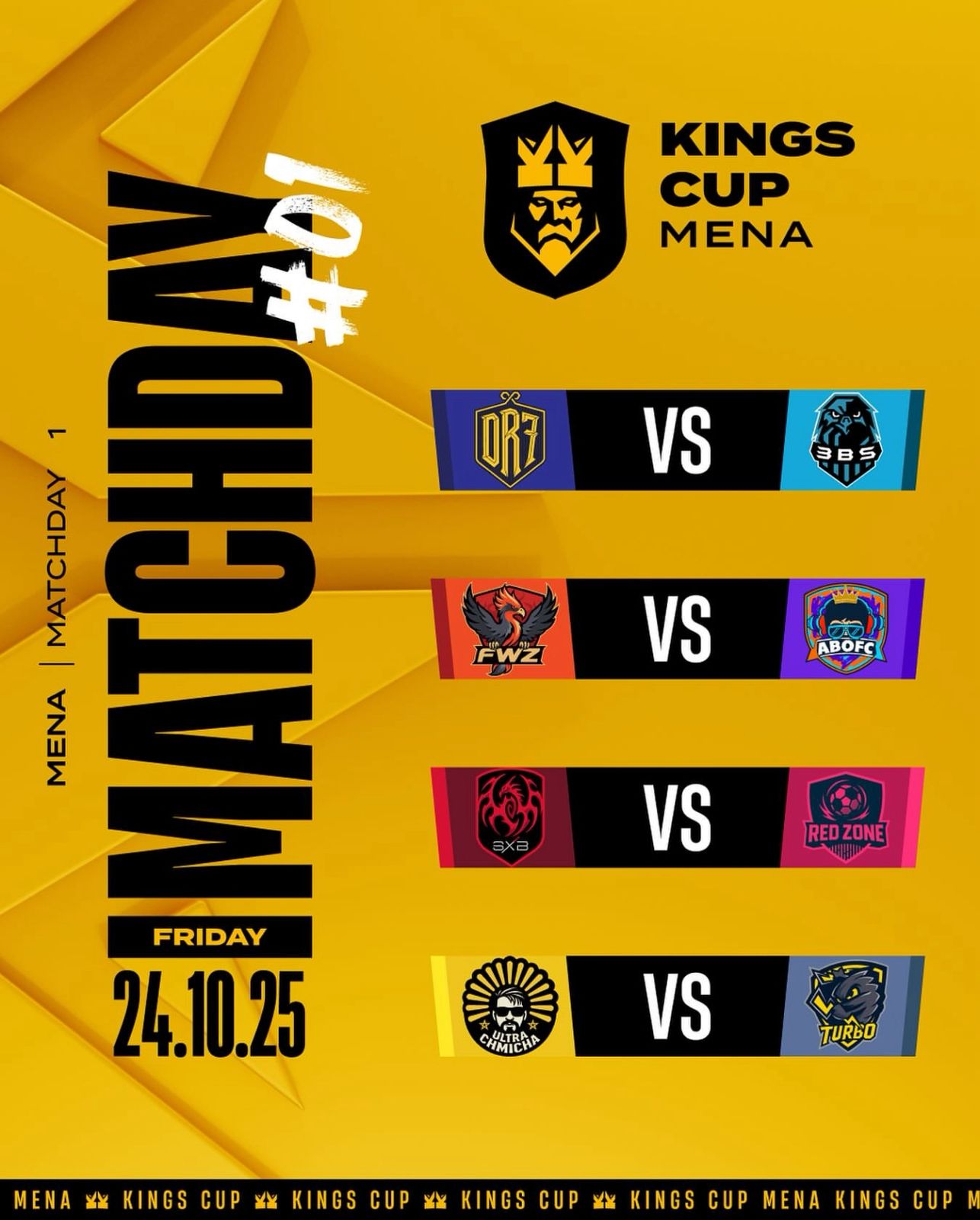 كما تشهد الجولة الأولى من البطولة أربع مباريات قوية تمزج بين التنافس الرياضي والرمزية العربية، حيث يفتتح فريق دربحة (DR7) من السعودية الموسم بمواجهة فريق عبسي (3DS) من الأردن في تمام الساعة 8 مساءً ، في لقاء عربي يترقبه الجمهور الخليجي والعربي بوصفه الانطلاقة الرسمية للدوري.