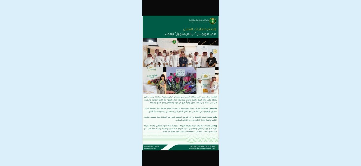 وبحسب إحصاءات فرع وزارة البيئة والمياه والزراعة، تم إصدار 109 تصاريح للنحالين، و1,135 ترخيصًا لتربية النحل وإنتاج العسل، إضافة إلى تدريب أكثر من 600 متدرب ومتدربة، وتقديم 799 طلب دعم ضمن برنامج “ريف”، وتخصيص 11 موقعًا استثماريًا لتطوير معامل فرز العسل.