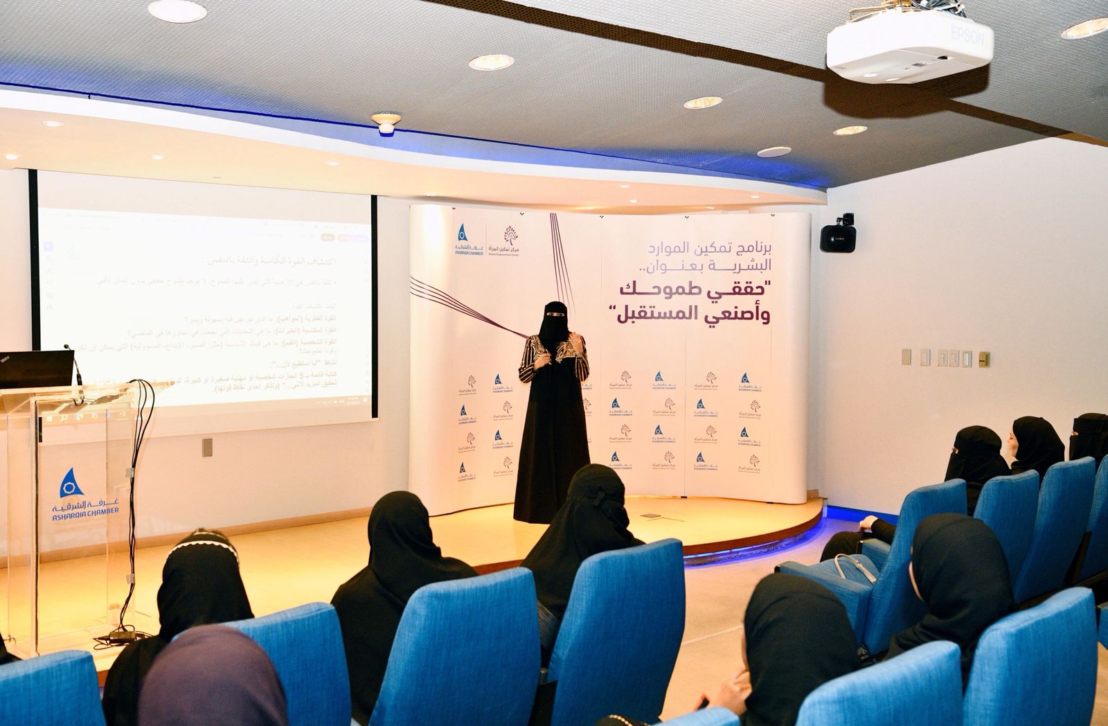 ضمن برنامج تمكين الموارد والكفاءات البشرية نظمت غرفة الشرقية مُمثلة بمركز تمكين المرأة يومي الأحد والإثنين 19-20 أكتوبر 2025م تحت عنوان "حققي طموحك واصنعي المستقبل" وقدمت البرنامج سهير بنت أحمد اللافي، مدربة الإدارة وتطوير الذات والمستشارة الإدارية، والمدربة في مجال الوعي الذاتي ومهارات القيادة والمدربة الشخصية في إدارة المشاعر خلود بنت محمد الحصيني، إضافة إلى الجلسات الاستشارية الفردية المقدمة من المُختصين بمركز سواعد"هدف" للمُشاركين في البرنامج.