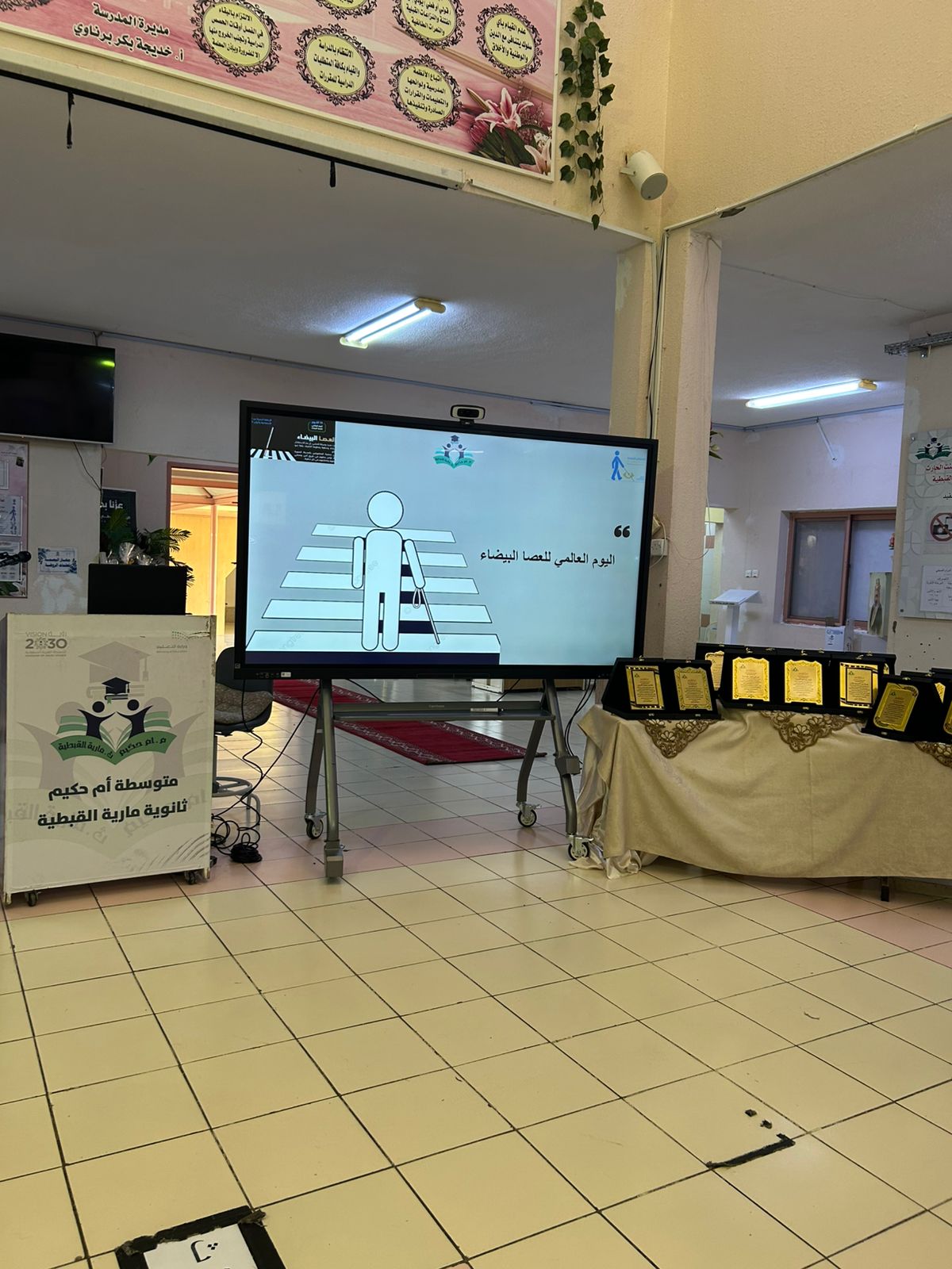 كما تضمن الحفل تعريفًا بجمعية رؤية وبالعصا البيضاء، إضافةً إلى مسابقات ترفيهية وركن لجمعية رؤية، وأركان أخرى من أعمال الطالبات بإشراف المعلمات، وتم تبادل التكريم بين إدارة الجمعية وإدارة المدرسة تقديرًا للتعاون البنّاء والمشاركة الفاعلة.