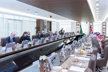 وبحث خلال الاجتماع سبل تعزيز العلاقات التجارية والاقتصادية بين البلدين الصديقين، مع التركيز على القطاعات ذات الأولوية والواعدة، كما تناول الجانبان التعاون في مجالات الخدمات المالية، والتقنية المالية(Fintech)، والتجارة الإلكترونية، والابتكار، والتصنيع المتقدم، وسلاسل الإمداد، وتعزيز التنافسية، والصادرات، إضافة إلى استعراض أبرز المبادرات والمستجدات المشتركة التي تعمل عليها اللجنة الاقتصادية والاجتماعية في مجلس الشراكة الإستراتيجي السعودي – البريطاني.