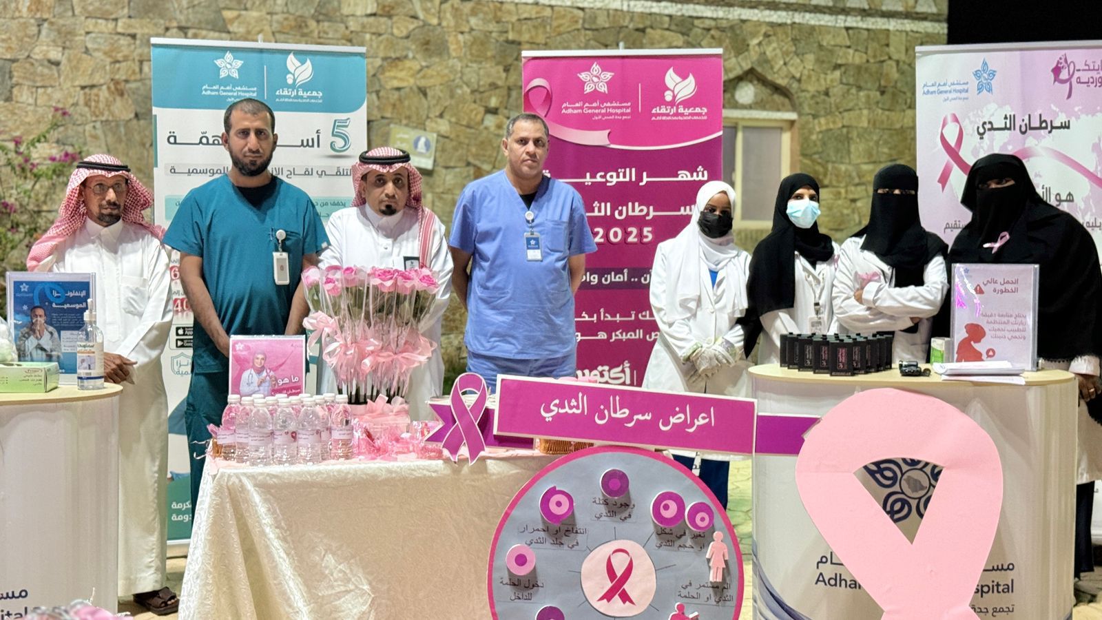 وتضمنت الفعاليات عددًا من البرامج التوعوية والصحية التي تهدف إلى رفع مستوى الوعي الصحي لدى أفراد المجتمع، من أبرزها حملة شهر التوعية بسرطان الثدي التي تركّز على أهمية الكشف المبكر ودعم الجهود الوطنية في الوقاية من المرض، إلى جانب تفعيل حملة تطعيم الإنفلونزا الموسمية التي تأتي ضمن جهود مستشفى أضم العام للوقاية من الأمراض الموسمية والحد من انتشارها، ورفع المناعة المجتمعية، وتشجيع أفراد المجتمع على أخذ اللقاح.