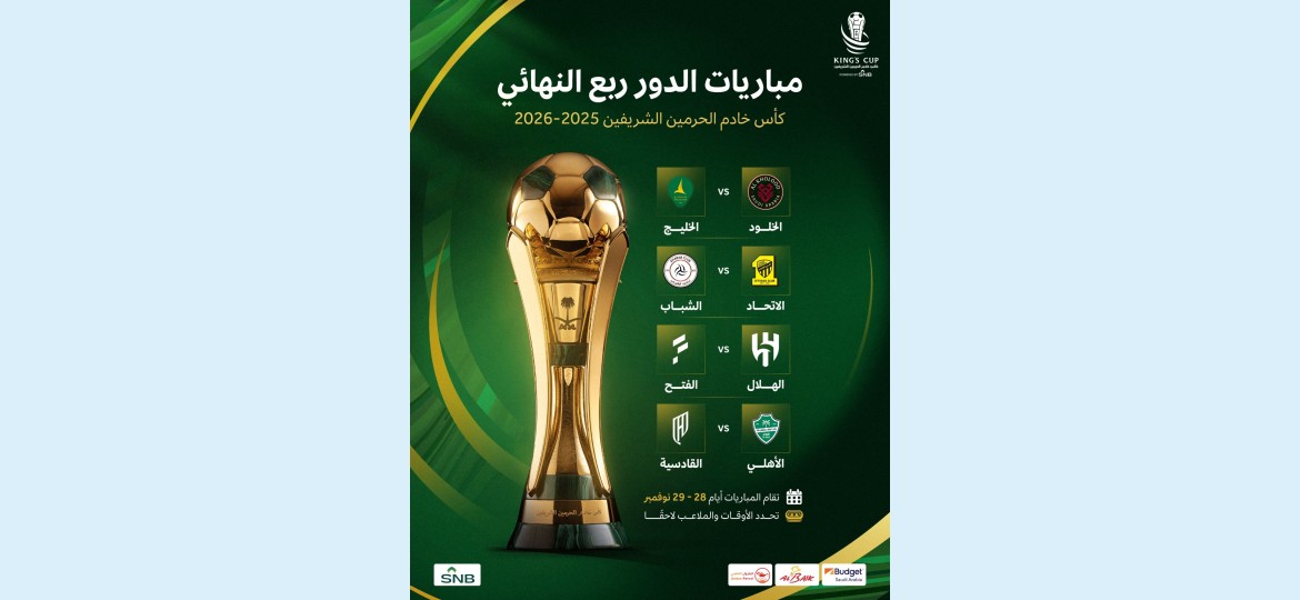 وستقام المباريات في نهاية الشهر المقبل وتحديداً يومي 28 و 29 من نوفمبر وذلك قبل توقف المسابقات المحلية بسبب مشاركة المنتخب الأول في بطولة كأس العرب خلال شهر ديسمبر المقبل.