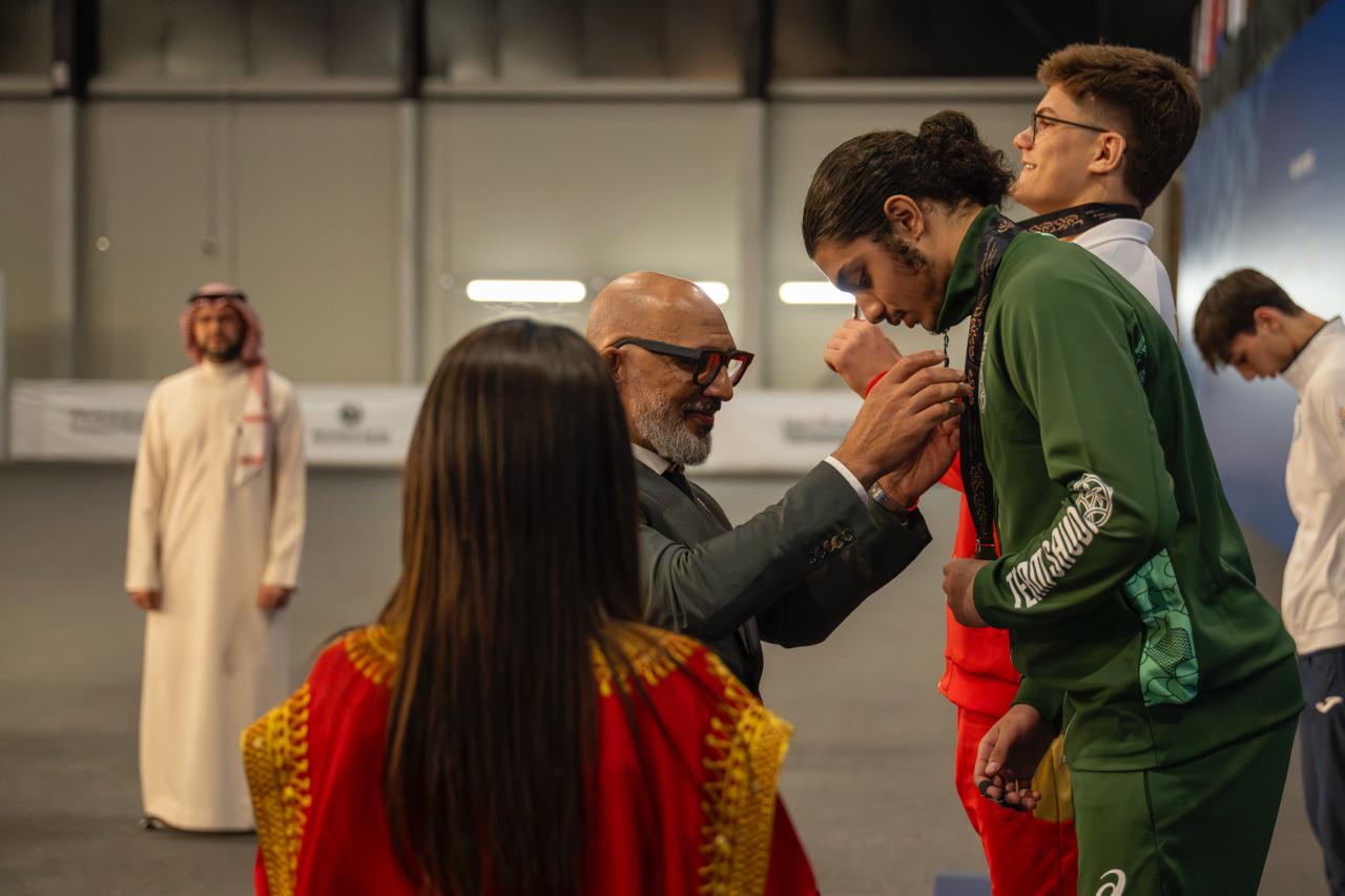وبعد نهاية المسابقة، توج صاحب السمو الأمير فهد بن جلوي بن عبدالعزيز بن مساعد، الفائزين بالمراكز الثلاث الأولى لمنافسات وزن 55 كجم.