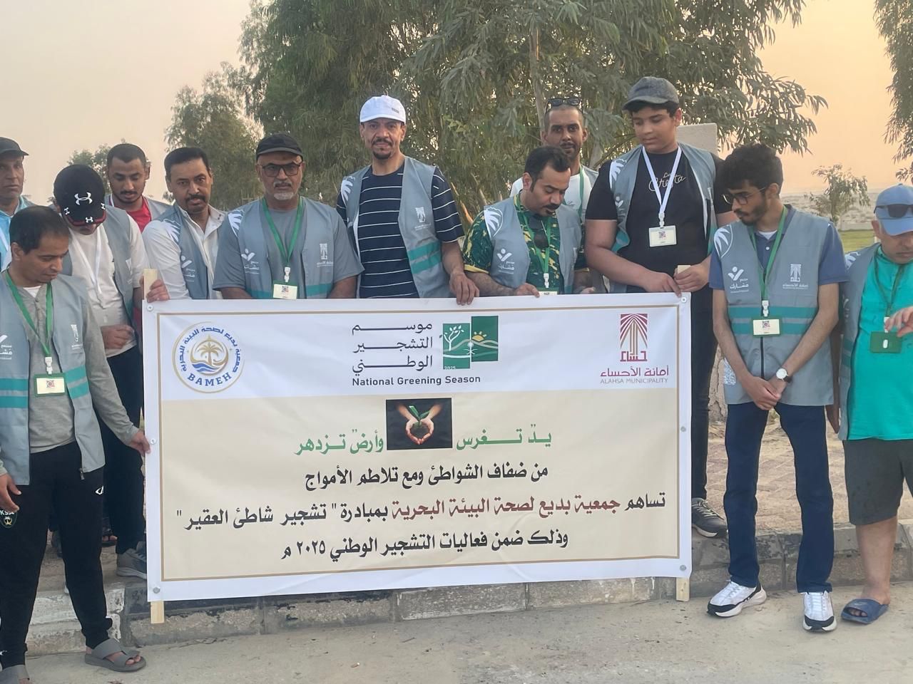 من ضفاف الشواطئ ومع تلاطم الأمواج تمكنت جمعية بديع لصحة البيئة البحرية من غرس  150 شتلة  زراعية وتحديدا ً على أسوار بلدية العقير وذلك تزامناً مع موسم التشجير الوطني 2025 م .