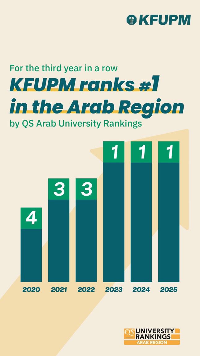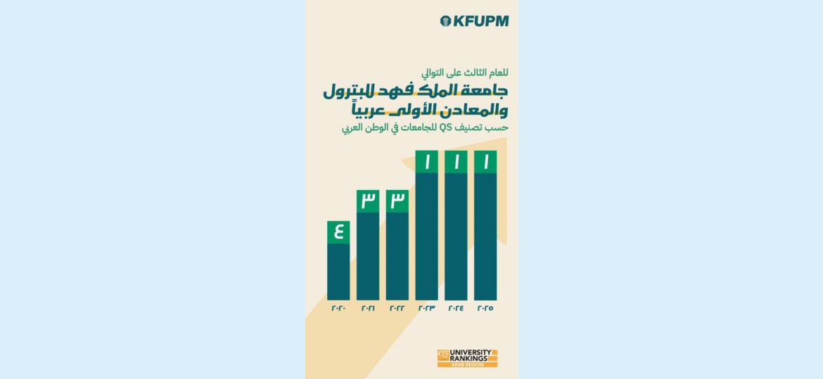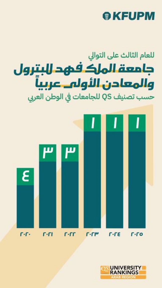 للعام الثالث على التوالي، حققت  جامعة الملك فهد للبترول والمعادن  المركز الأول في تصنيف كيو إس للجامعات في العالم العربي .“QS Arab Region University Rankings 2026”