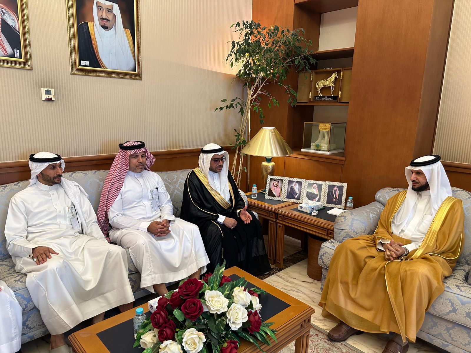 من جانب آخر، استقبل السيف في مقر المحافظة رئيس مجلس إدارة جمعية أم الحمام الخيرية للخدمات الإنسانية سلمان بن عبدالله آل عباس، وعددًا من أعضاء المجلس.