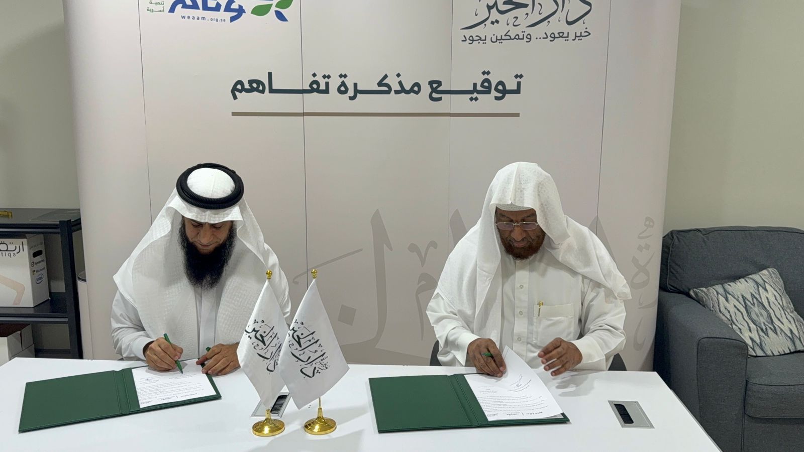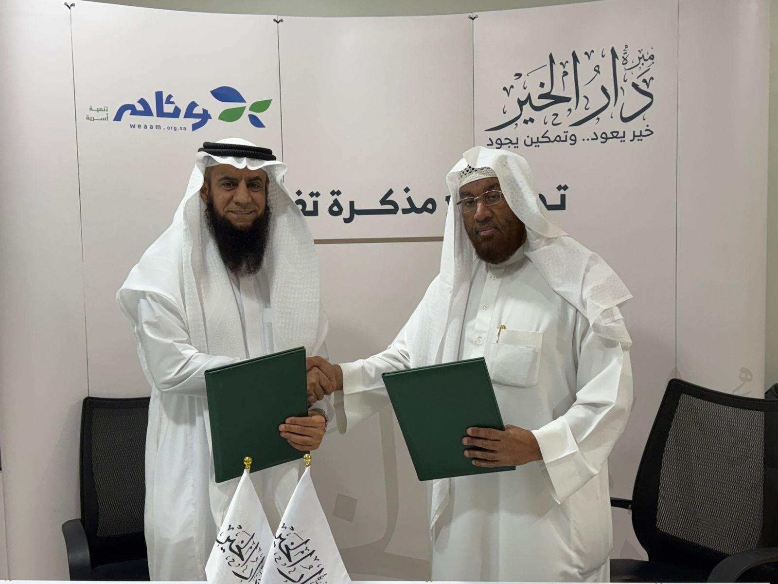وقعت جمعية مبرة دار الخير وجمعية وئام للتنمية الأسرية اتفاقية تعاون مشترك تهدف إلى تعميق التعاون وتبادل الخبرات بينهما لخدمة أكبر شريحة ممكنة من المستفيدين الأشد احتياجا بمدينة الدمام وذلك في مقر جمعية دار الخير وتسعى الشراكة إلى تكامل الموارد والخبرات لرفع مستوى الاستقرار النفسي والاجتماعي من خلال تقديم برامج متخصصة في التأهيل الأسري والنفسي ودعم المقبلين على الزواج وتقديم الاستشارات الأسرية والدورات التدريبية مما يسهم في تمكين الأسر وتحقيق الاستقرار الاجتماعي وبناء مجتمع متماسك ومستقر وقد مثل جمعية مبرة دار الخير في توقيع المذكرة المدير التنفيذي الأستاذ حسين بن علي العلي فيما مثل جمعية وئام الأمين العام الدكتور محمد بن عبد الرحمن العبد القادر