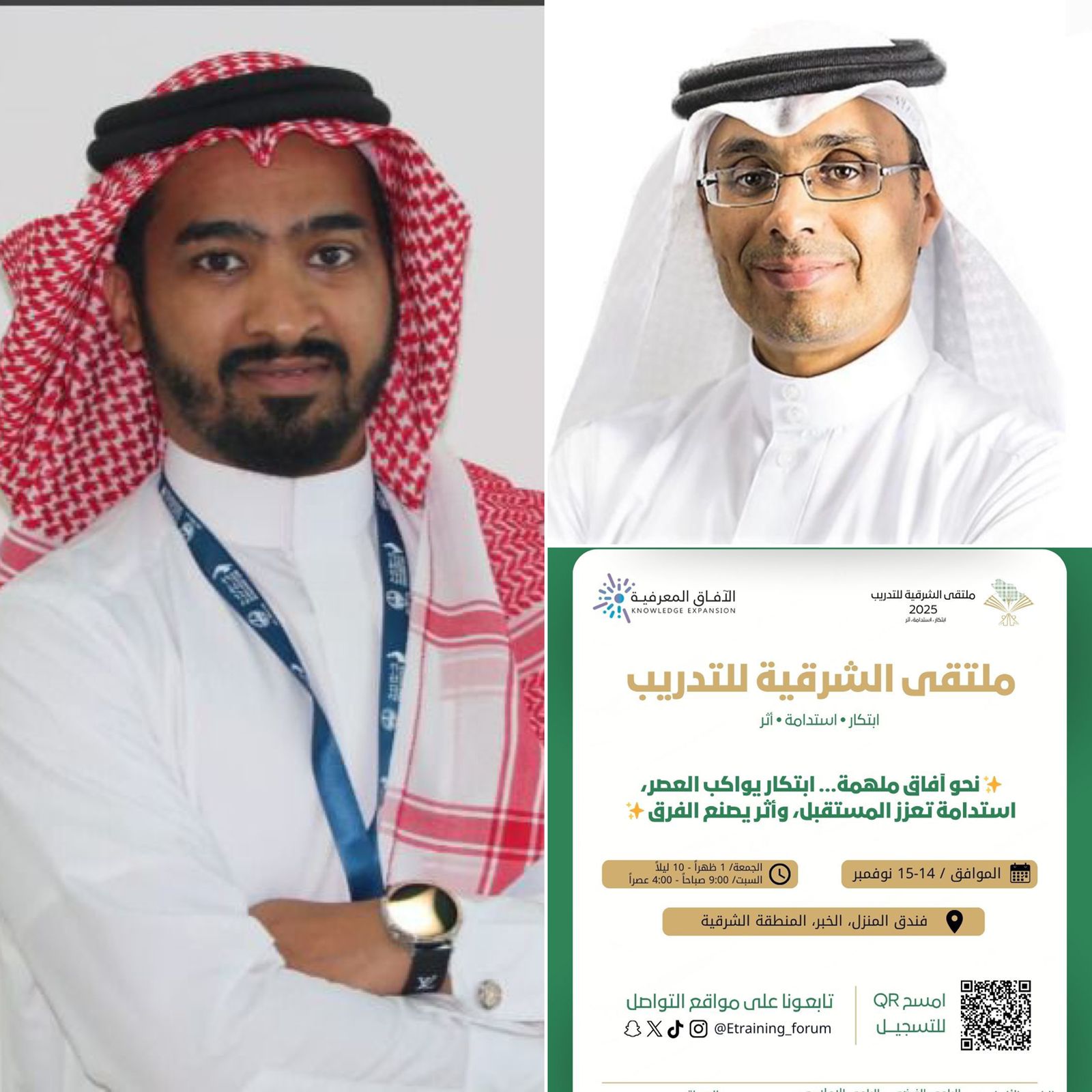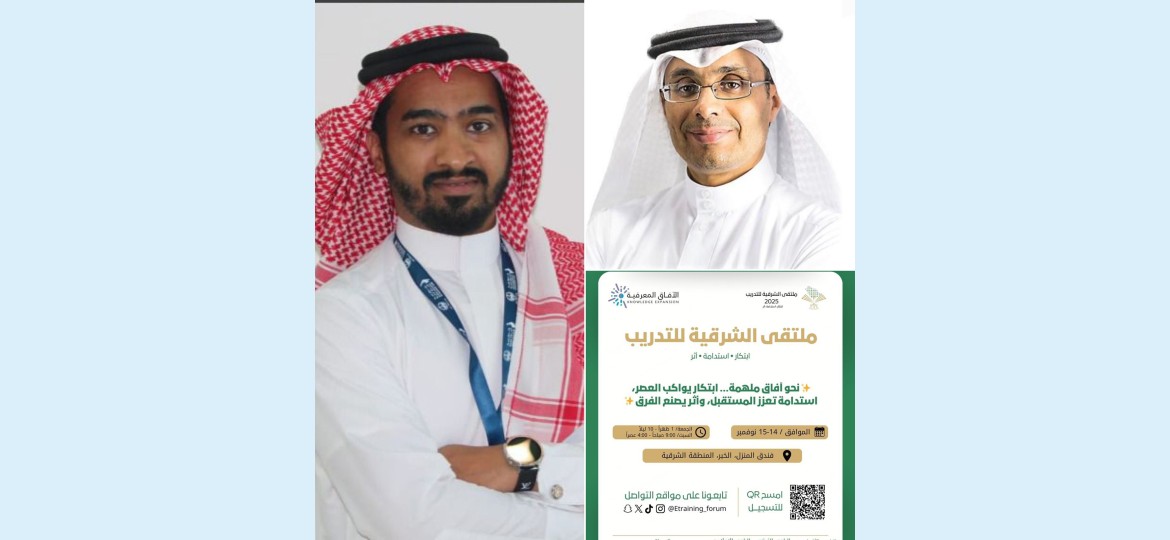 تنطلق بعد غدٍ الجمعة فعاليات ملتقى الشرقية للتدريب 2025، الذي تنظمه مؤسسة الآفاق المعرفية لتنظيم المعارض والمؤتمرات، بمشاركة 35 متحدثًا خليجيًا وعربيًا، وذلك بفندق المنزل بمحافظة الخبر على مدى يومين، 14 و15 نوفمبر 2025.