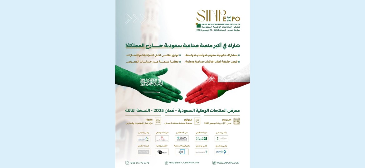 ويأتي تنظيم المعرض في إطار تعزيز التكامل الصناعي الخليجي وتمكين الصادرات السعودية وفتح آفاق جديدة للاستثمار المشترك بين المملكة العربية السعودية وسلطنة عُمان، بما ينسجم مع مستهدفات “رؤية السعودية 2030” و”رؤية عُمان 2040”.