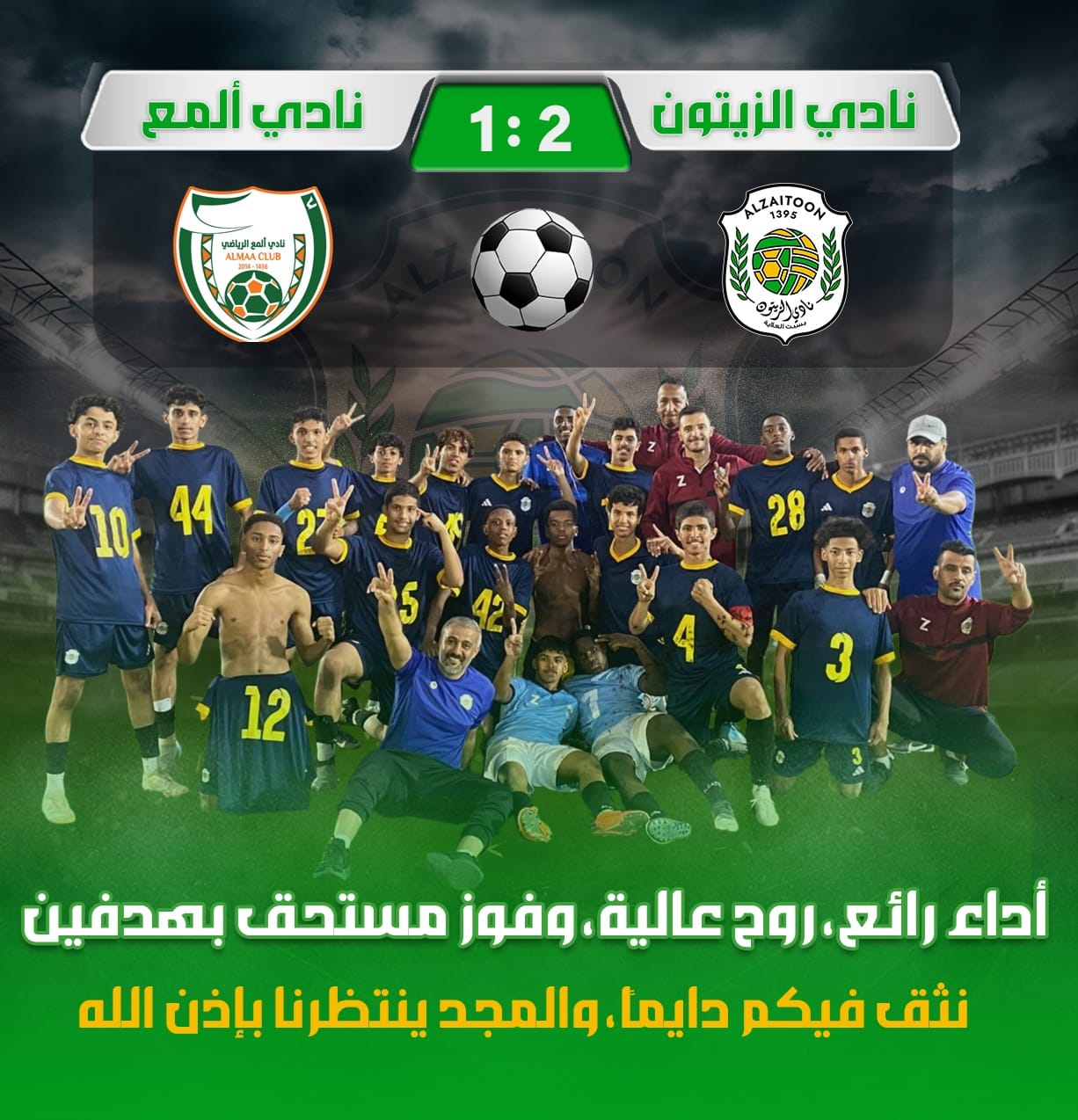 ضمن منافسات بطولة منطقة عسير لفئة 16 سنة، أقيمت مساء أمس الأربعاء مباراة قوية جمعت نادي الزيتون بنظيره نادي ألمع على ملعب مدينة رجال ألمع.