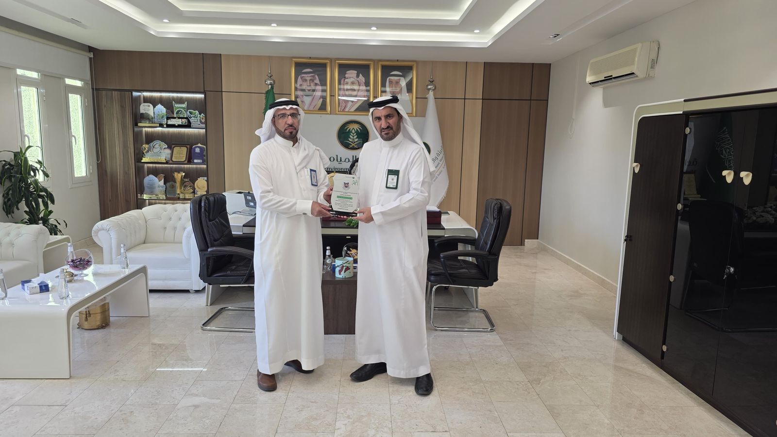 حيث قام الأستاذ على بن فيصل الزهراني بأسمه ونيابة عن زملائه بتقديم درع للمهندس فهد بن مفتاح الزهراني تقديراً وعرفاناً بمناسبة الترقية إلى المرتبة الرابعة عشر.