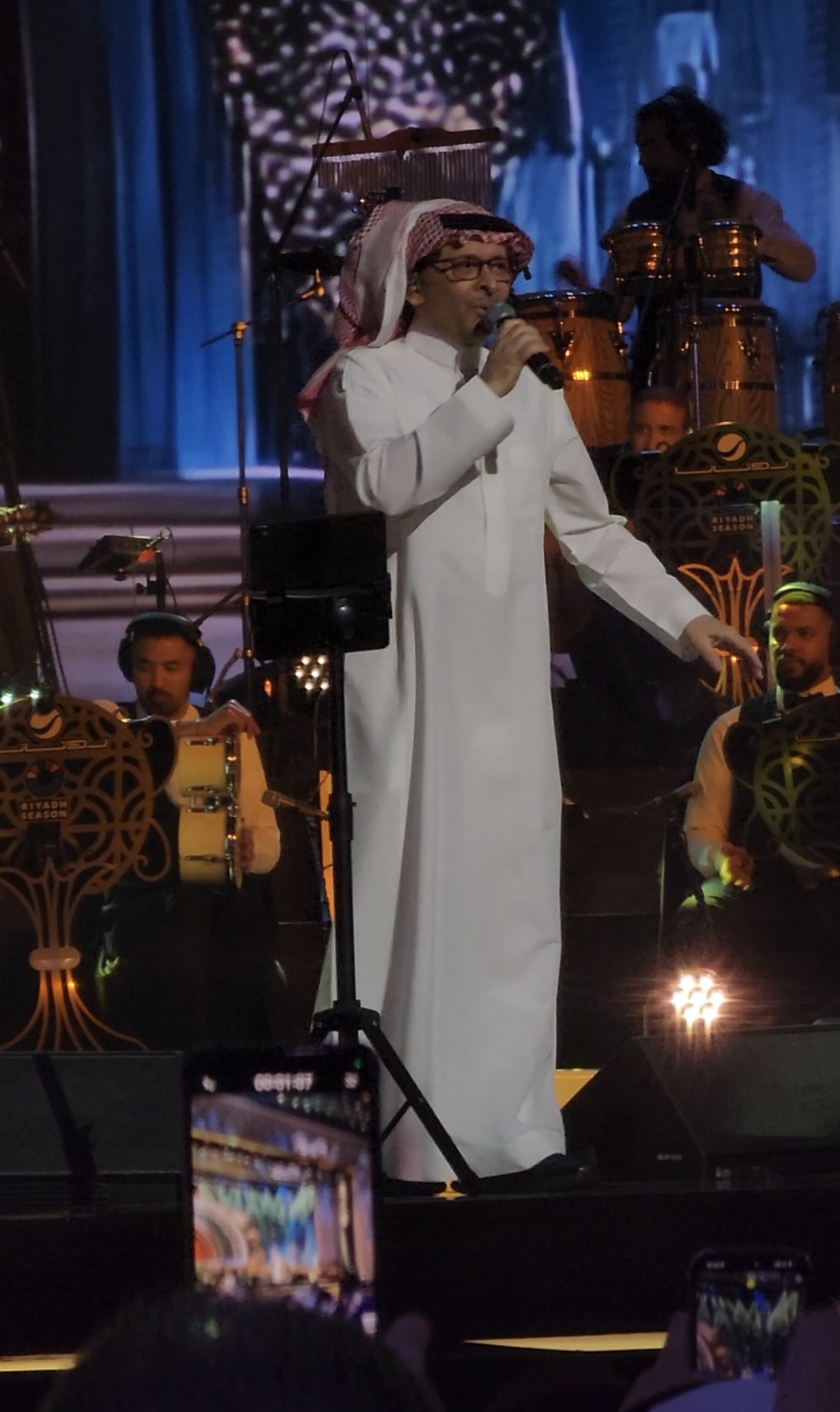 وقدّم عبدالمجيد عبدالله مجموعة من أبرز أعماله بمصاحبة الفرقة الموسيقية بقيادة المايسترو وليد فايد، وسط تنظيم مميز من شركة روتانا، التي قدمت عرضاً فنياً متكاملاً يليق بالنجم وبروح الحدث.