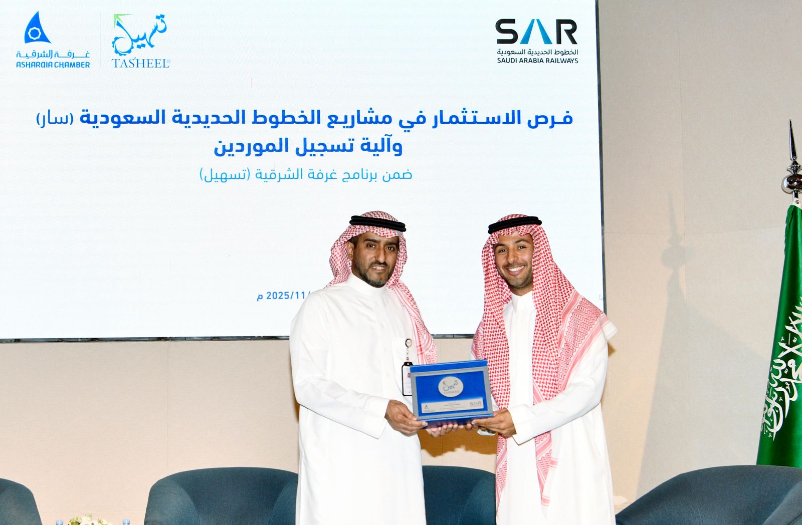 قدّمت الخطوط الحديدية السعودية "سار" حزمة من الفرص الاستثمارية المتنوعة أمام رجال الأعمال في المنطقة الشرقية، مع تركيز خاص على دعم الشركات الصغيرة والمتوسطة، وذلك خلال اللقاء الذي نظَّمته غرفة الشرقية يوم 13 نوفمبر2025م، تحت مظلة برنامج "تسهيل"، الذي أطلقته الغرفة في أبريل2017م بهدف تعزيز الحركة الاستثمارية في المنطقة وفتح قنوات تواصل مباشرة بين الشركات الكبرى والقطاع الخاص المحلي من الموردين والمصنّعين ومقدمي الخدمات.