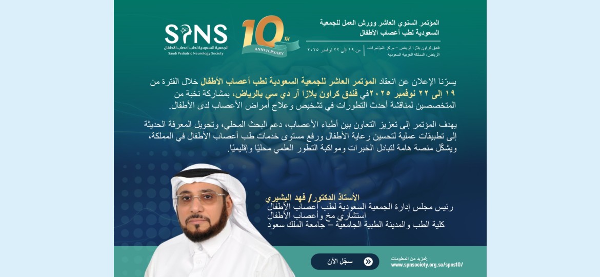 ينطلق المؤتمر العاشر للجمعية السعودية لطب أعصاب الأطفال الأسبوع الجاري في الرياض خلال الفترة من 19 إلى 22 نوفمبر الجاري، ويناقش نخبة من الخبراء المحليين والإقليميين والدوليين خلال فعاليات الحدث عدد من أبرز المواضيع الهامة التي تعكس تطور هذا التخصص في المملكة العربية السعودية وأخر المستجدات والتحديات الحالية في هذا المجال الحيوي ، ويعُد المؤتمرالرائد إقليمياً في هذا المجال المنصة العلمية والتعليمية الأساسية للجمعية السعودية لطب أعصاب الأطفال، ويهدف إلى تعزيز خدمات طب أعصاب الأطفال على المستوى المحلي والإقليمي.