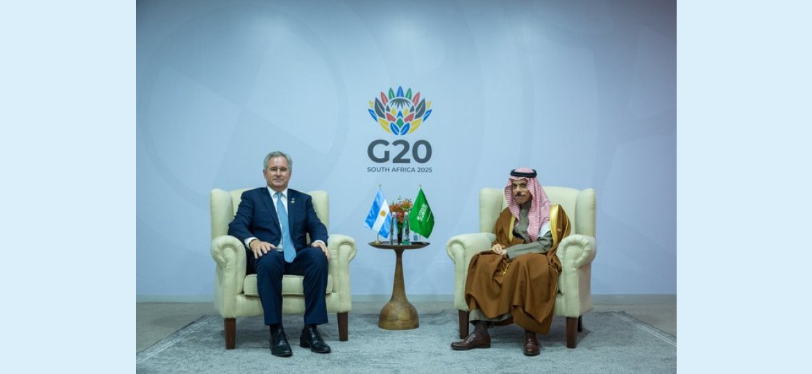 التقى صاحب السمو الأمير فيصل بن فرحان بن عبدالله وزير الخارجية، اليوم، معالي وزير الشؤون الخارجية والتجارة الدولية والعبادة بجمهورية الأرجنتين بابلو كويرنو، وذلك على هامش اجتماع قمة قادة دول مجموعة العشرين (G20) بمدينة جوهانسبرغ في جمهورية جنوب أفريقيا.
