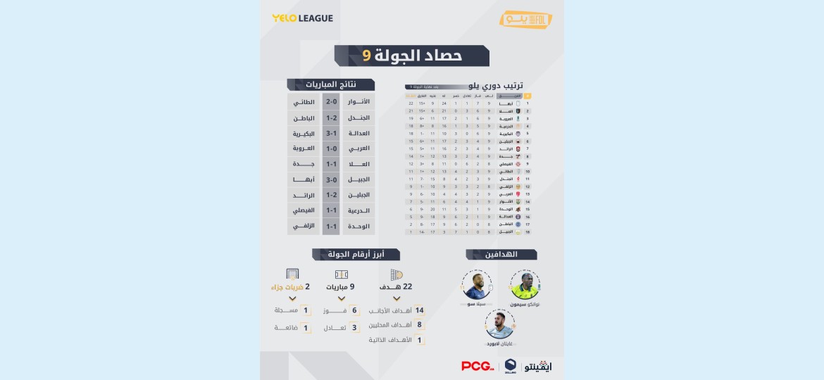 رغم فقدانه الصدارة، حافظ العلا على لقبه كأقوى خط دفاع في الدوري باستقباله 6 أهداف فقط خلال 9 جولات.
