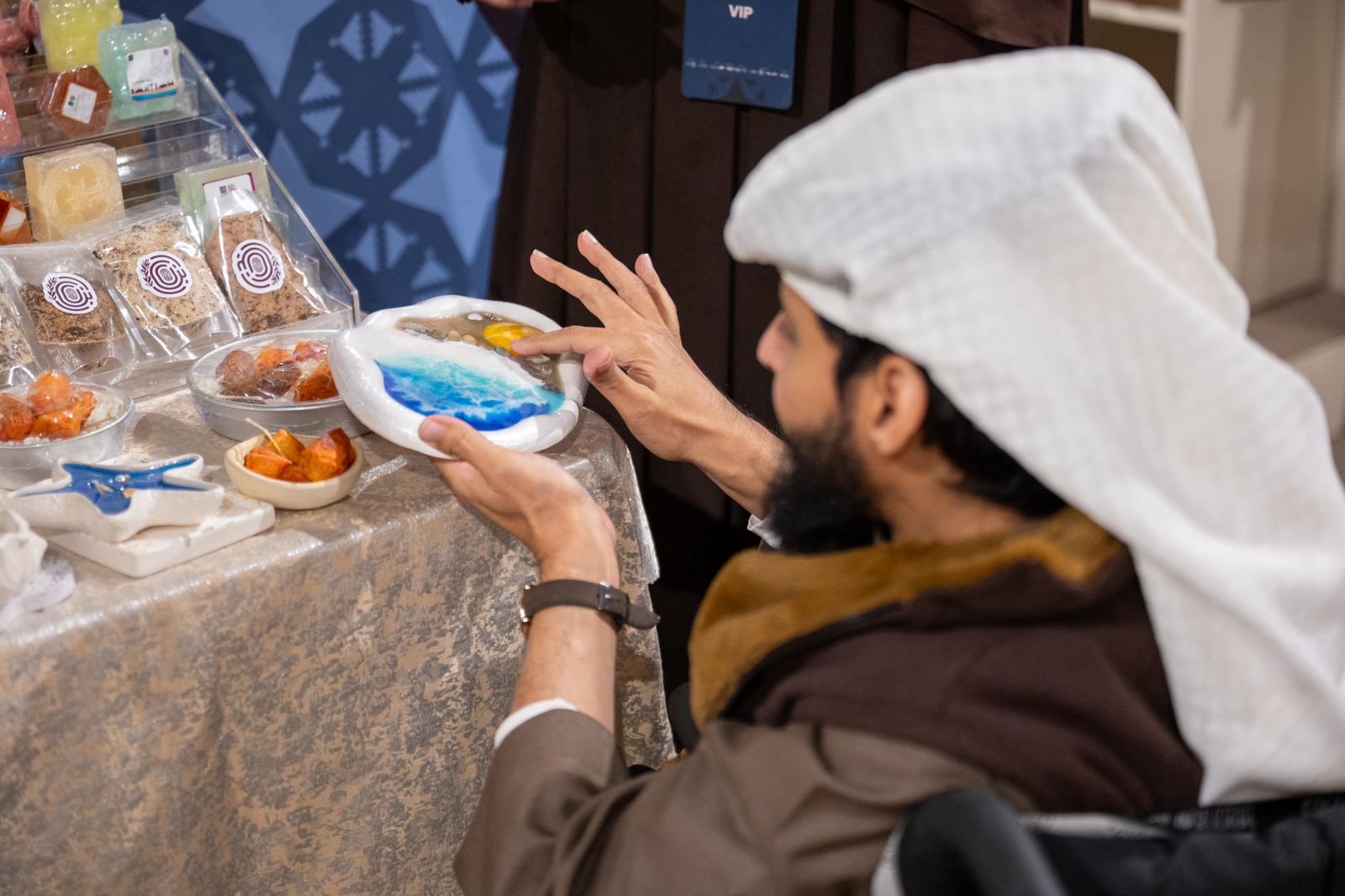 وشهد الجناح إشادات واسعة من الزوار والمهتمين بالحرف والصناعات الإبداعية والتأهيل المهني ، تقديرًا لما قدمته الجمعية من منتجات عالية الجودة نُفّذت باحترافية ضمن برامج تدريبية متخصصة تهدف إلى تمكين الأشخاص ذوي الإعاقة وتحويل مهاراتهم إلى منتجات قادرة على المنافسة في الأسواق.