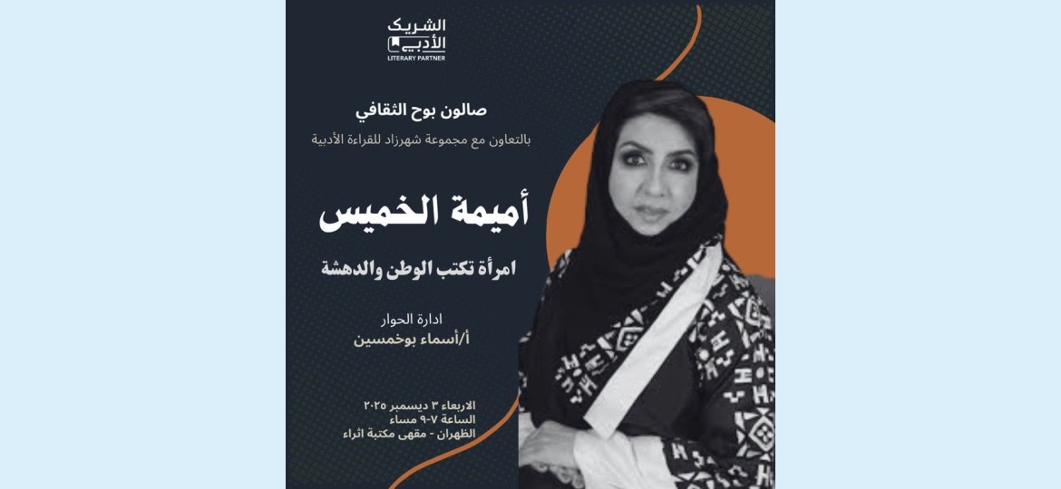 ومن المقرر أن يُقام اللقاء يوم الأربعاء 3 ديسمبر 2025، من الساعة 7 إلى 9 مساءً، وذلك في مقهى مكتبة إثراء بالظهران، وسط توقعات بحضور نوعي من القرّاء والمهتمين بالشأن الأدبي.
