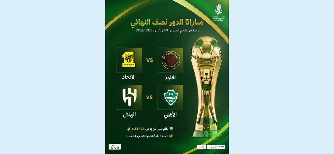 وتقام مباراتي نصف النهائي في شهر فبراير القادم وتحديداً في 23 و 24 وسيكون توقيت المباريات في الساعة 10.30 كونها ستلعب في شهر رمضان الكريم.