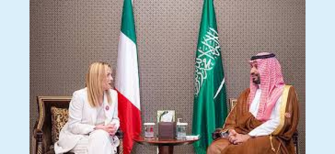 التقى صاحب السمو الملكي الأمير محمد بن سلمان بن عبدالعزيز آل سعود ولي العهد رئيس مجلس الوزراء، في العاصمة البحرينية المنامة اليوم، دولة السيدة جورجيا ميلوني رئيسة وزراء جمهورية إيطاليا، وذلك على هامش أعمال الدورة الـ 46 للمجلس الأعلى لمجلس التعاون لدول الخليج العربية.