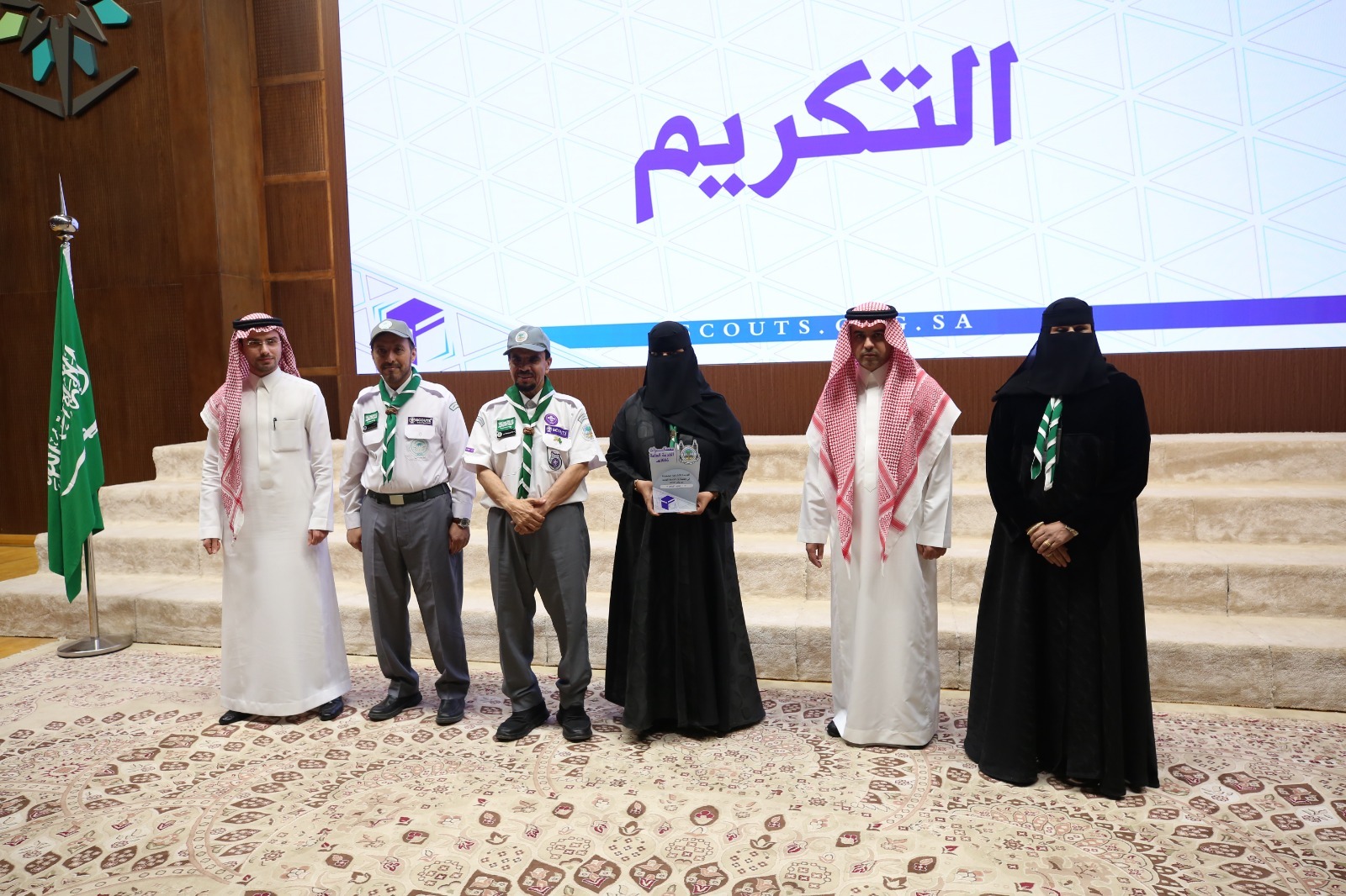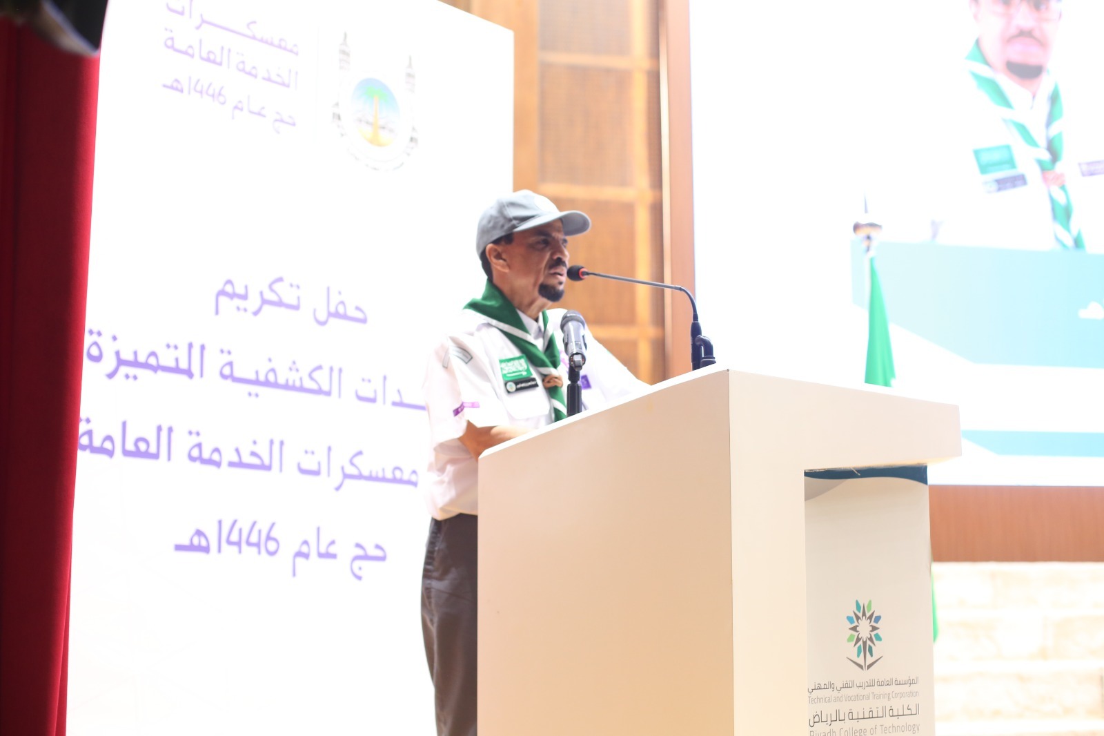 أقامت جمعية الكشافة العربية السعودية مساء اليوم حفلاً تكريمياً للوحدات الكشفية المتميزة في معسكرات الخدمة العامة لموسم حج 1446هـ، وذلك على مسرح الكلية التقنية بالرياض، بحضور المشرف العام على المعسكرات نائب رئيس الجمعية الدكتور عبدالرحمن بن إبراهيم المديرس، وعدد من مسؤولي القطاعات الكشفية بالمملكة.