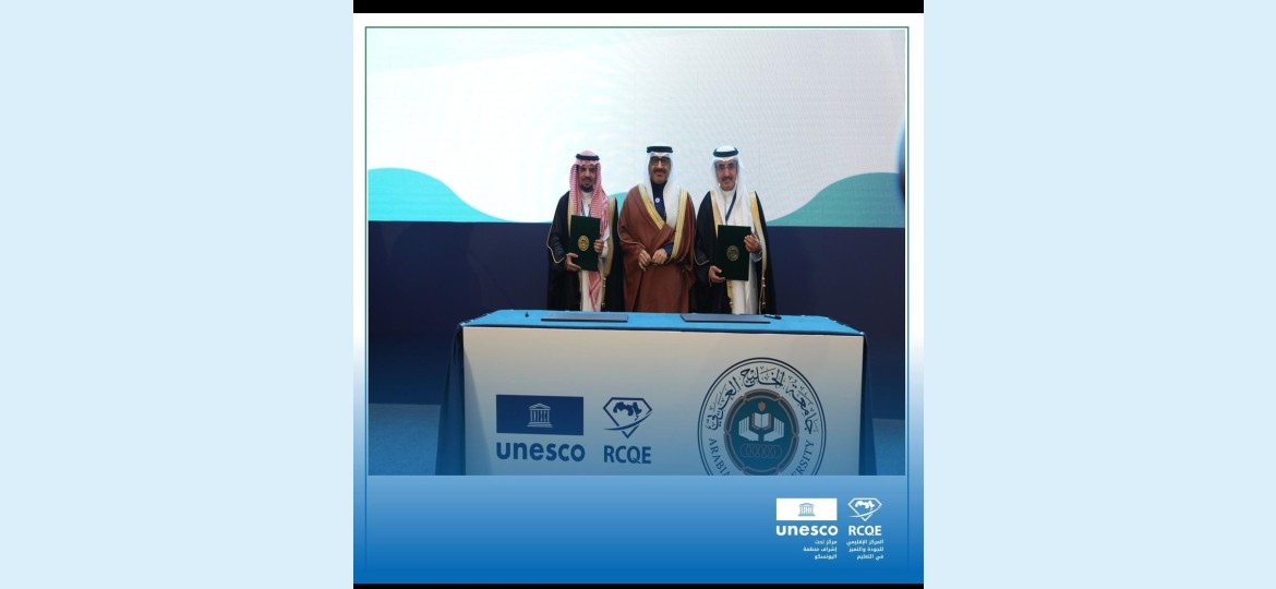 في خطوة نوعية تعزز دور البحث العلمي في دعم التنمية المستدامة، وقّع مركز اليونسكو الإقليمي للجودة والتميّز في التعليم وجامعة الخليج العربي اتفاقية شراكة استراتيجية لإنشاء كرسي علمي/بحثي متخصص بعنوان:" تأثيرات تغيّر المناخ على استراتيجيات الأعمال"، وذلك يوم الثلاثاء الموافق 11/6/1447هـ (2/12/2025م) ضمن فعاليات الملتقى الدولي تطوير برامج التعليم الجامعي في ضوء مهارات ومهن المستقبل الذي نظمه المركز بالتعاون مع جامعة الخليج العربي بمملكة البحرين برعاية وحضور سعادة الدكتور محمد بن مبارك جمعة وزير التربية والتعليم، ورئيس مجلس أمناء مجلس التعليم العالي بمملكة البحرين، وعضو مجلس إدارة مركز اليونسكو الإقليمي للجودة والتميّز في التعليم، بهدف تعزيز التعاون بين الجانبين في مجالات البحث، وبناء القدرات، وتطوير مبادرات استراتيجية مشتركة تخدم مستقبل التعليم الجامعي.