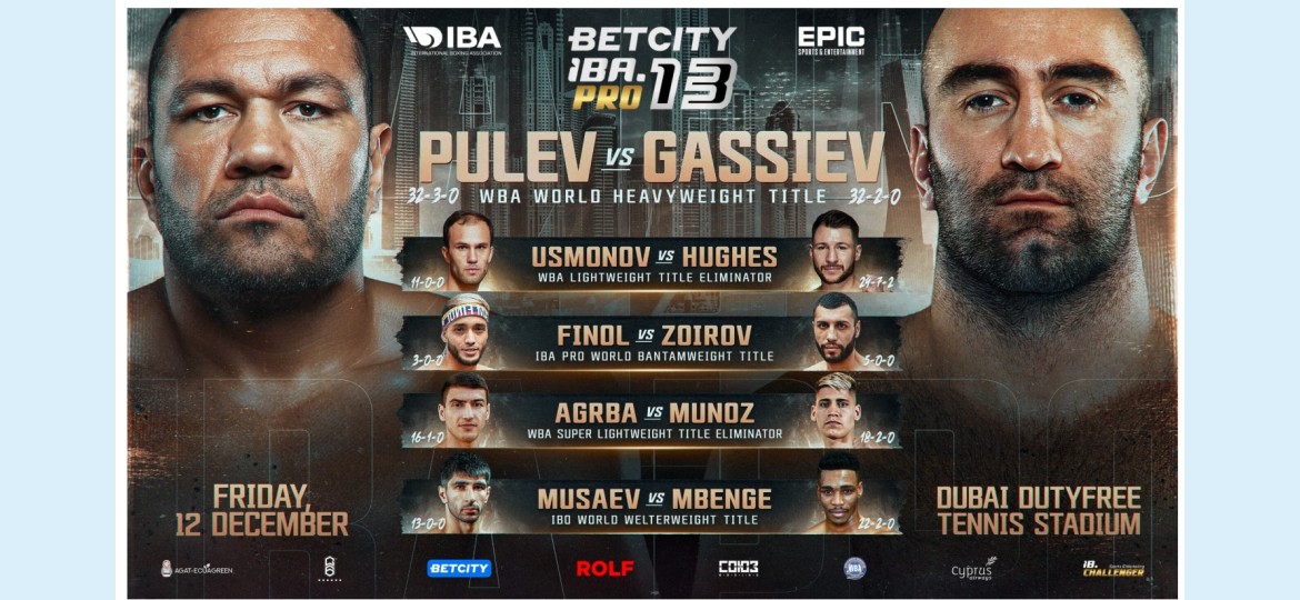 وتتصدر المواجهة على اللقب العالمي للوزن الثقيل لرابطة الملاكمة العالمية WBA، التي تجمع بين البلغاري كوبرات بوليف والروسي مراد غاسييف، وذلك ضمن مجموعة من النزالات المتكافئة وعالية الجودة.
